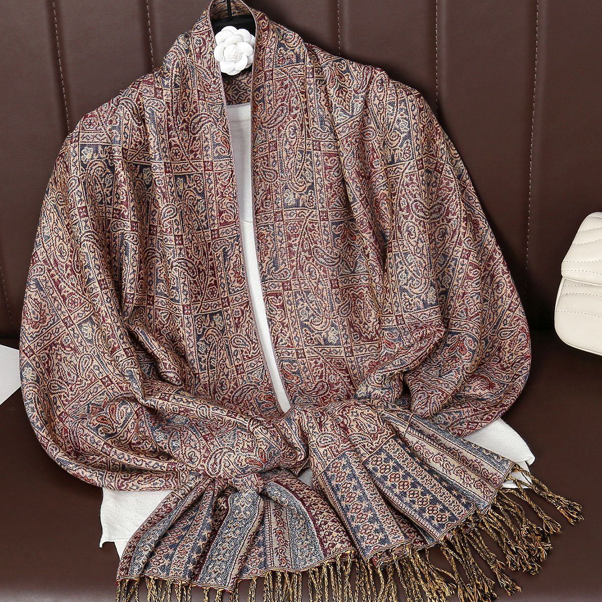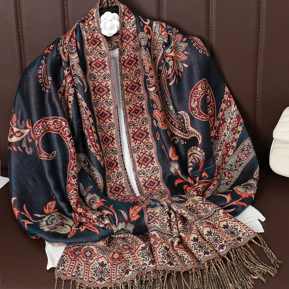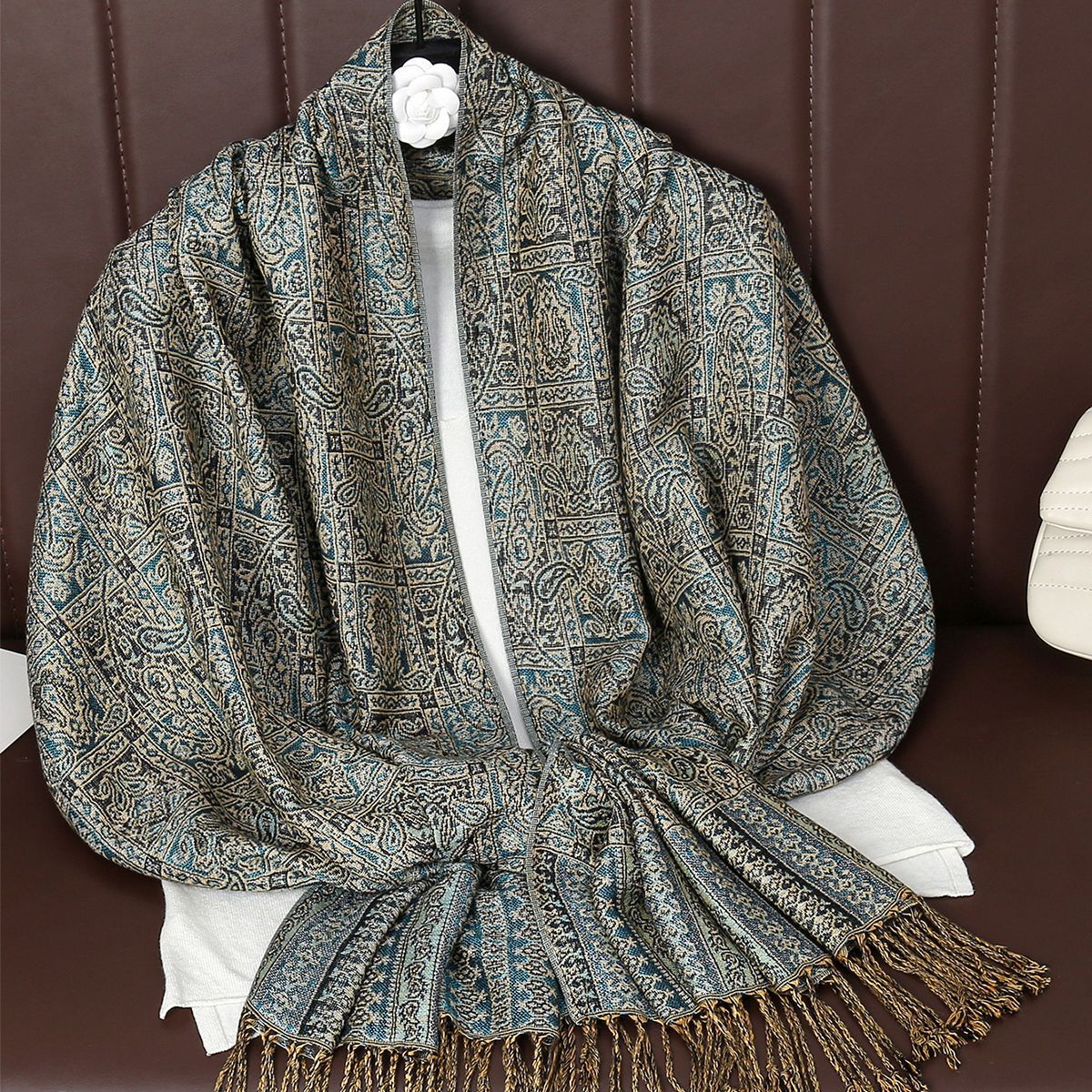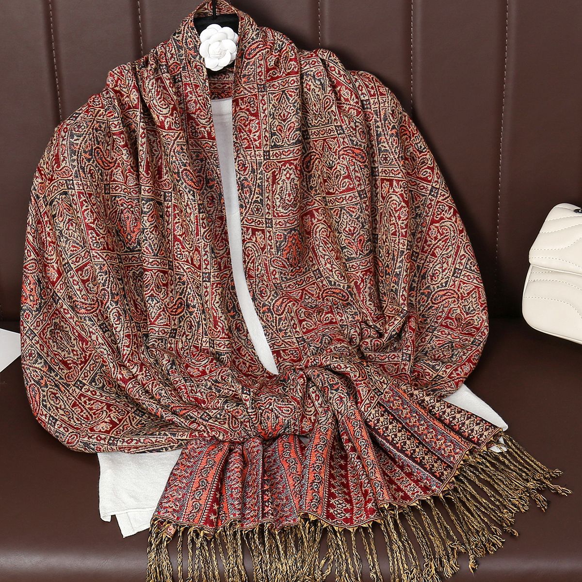 Wholesale of classic cross-border faux cashmere new fashionable all-season versatile jacquard cashew tassel scarves and long scarves