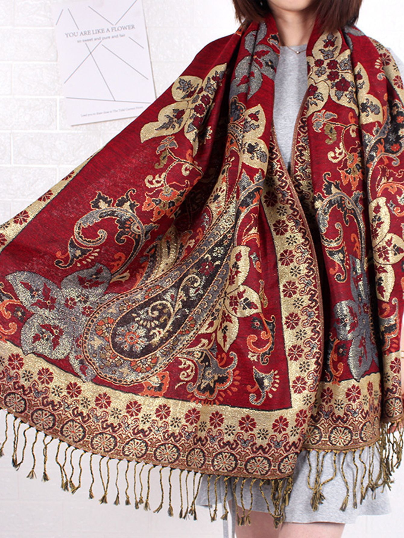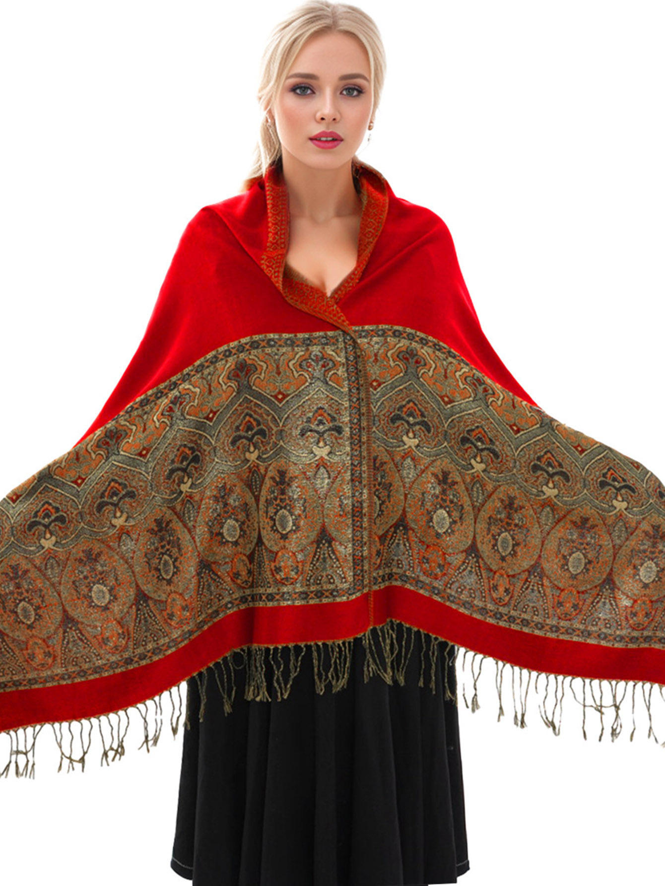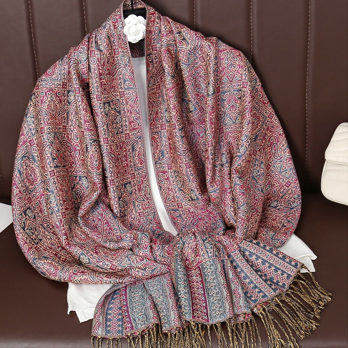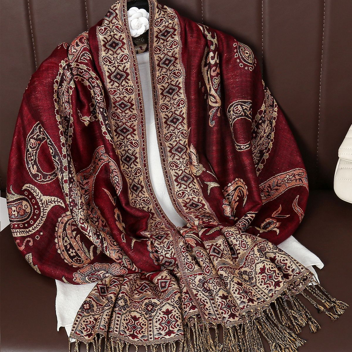 Wholesale of classic cross-border faux cashmere new fashionable all-season versatile jacquard cashew tassel scarves and long scarves