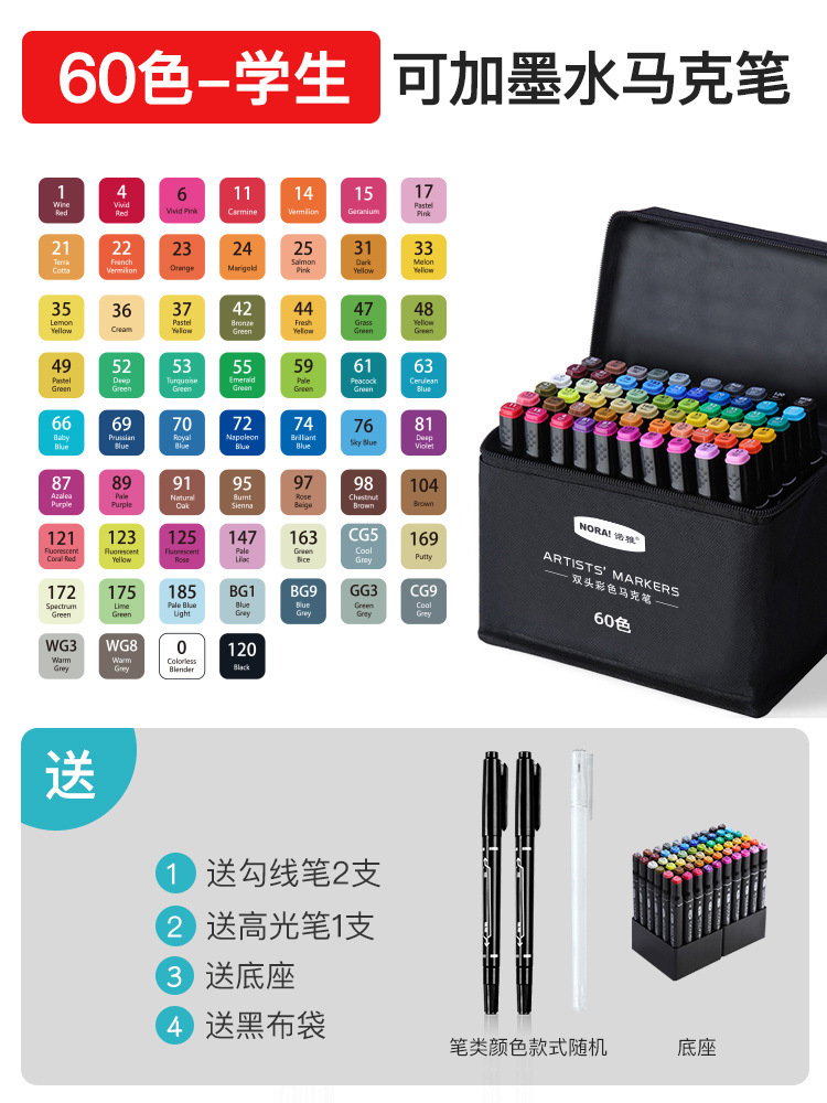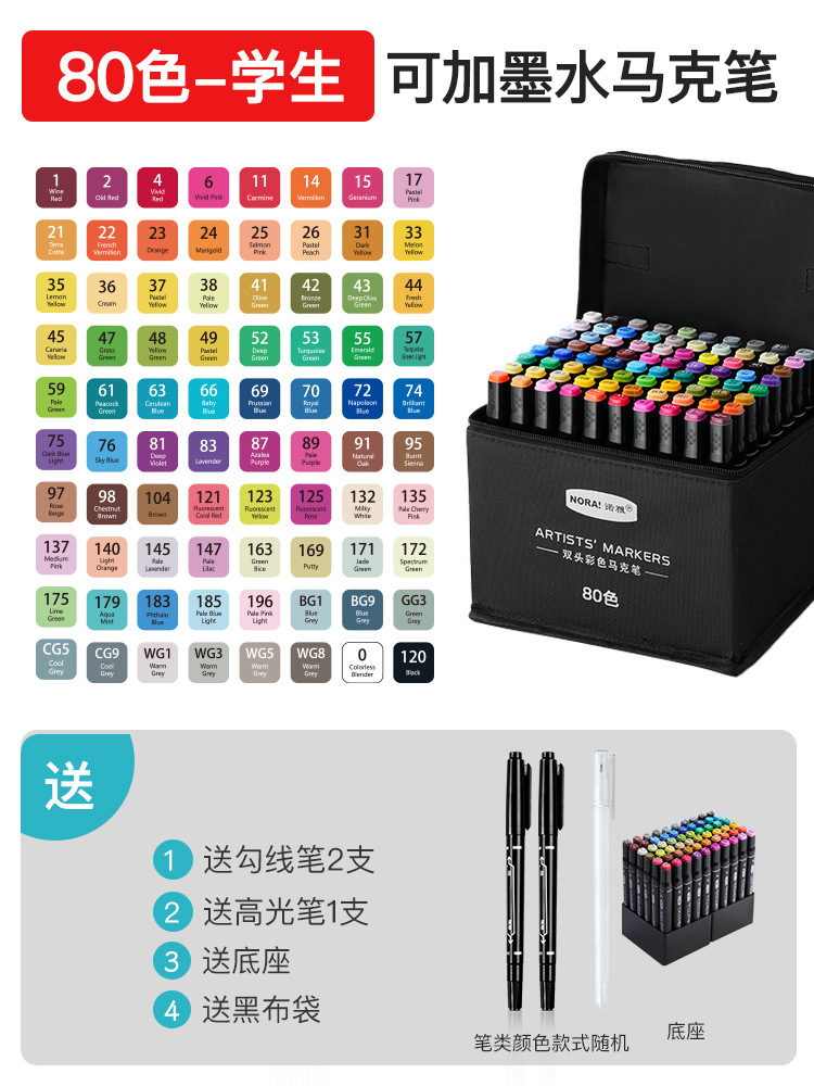 80-color oil-based bagged marker pens with white rods