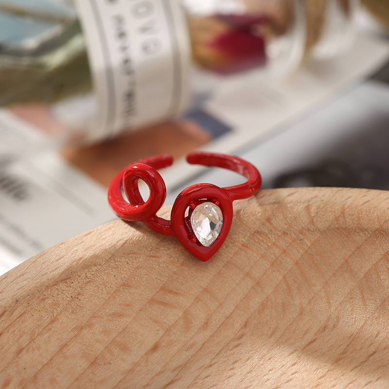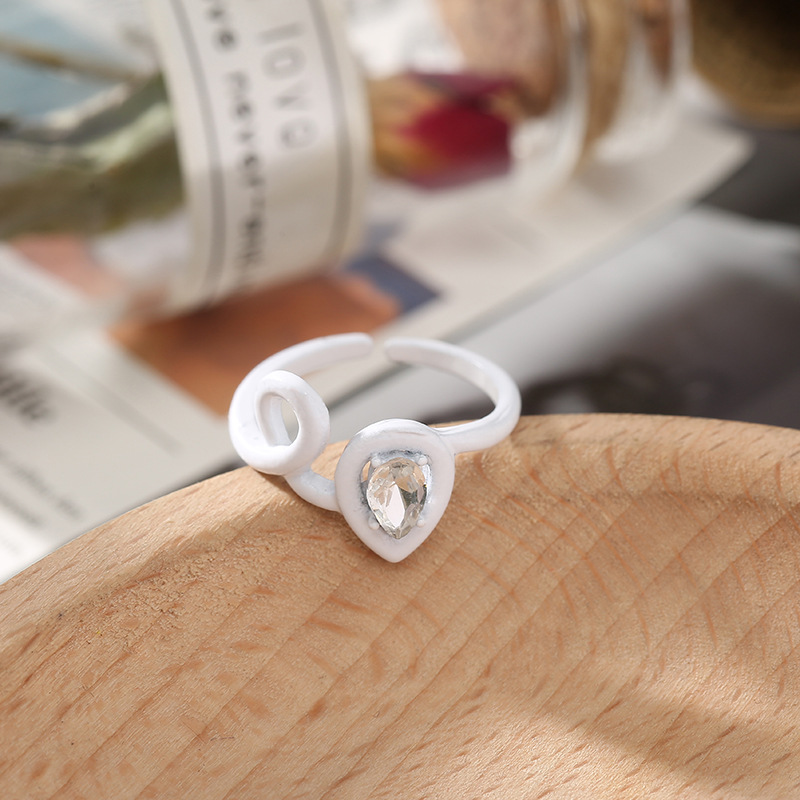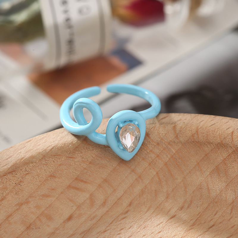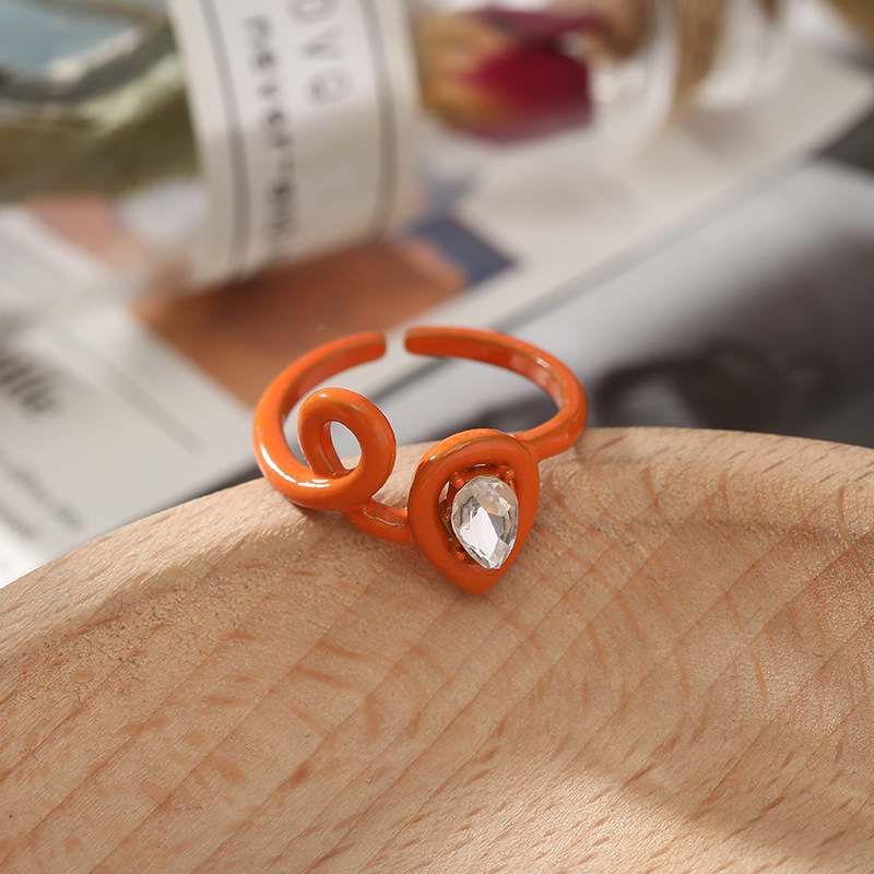 Wholesale of cross-border fashion irregular geometric rings for women with colorful creative diamond-encrusted heart-shaped index finger rings from Japan and South Korea