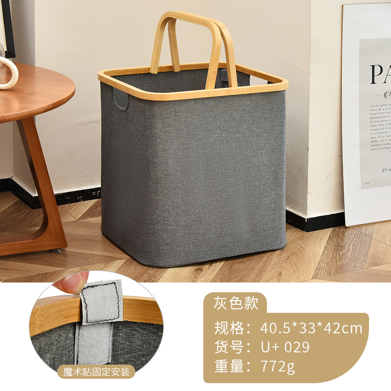 Wholesale of cross-border folding storage baskets with wooden handles, desktop organizing storage boxes, home bathroom and home dirty clothes baskets