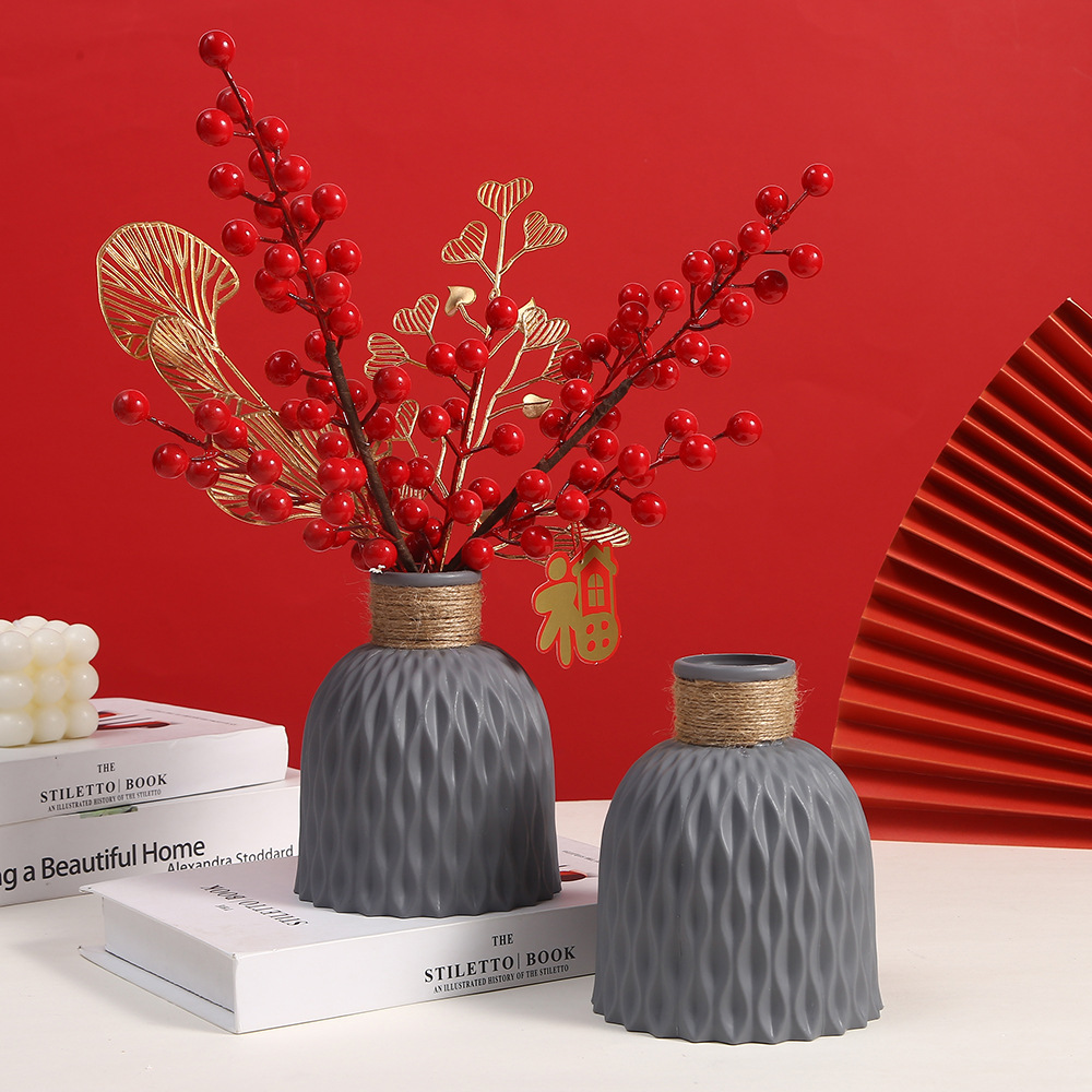 Wholesale of direct sales of imitation ceramic plastic decorative vases, PP living room ornaments, pineapple pattern flower POTS and imitation vases