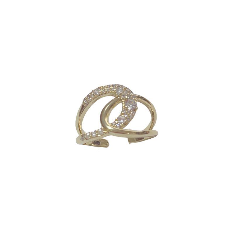 Wholesale of European and American cross-border design full-diamond cross-opening ring for women's unique, light luxury, versatile and super dazzling index finger ring accessories