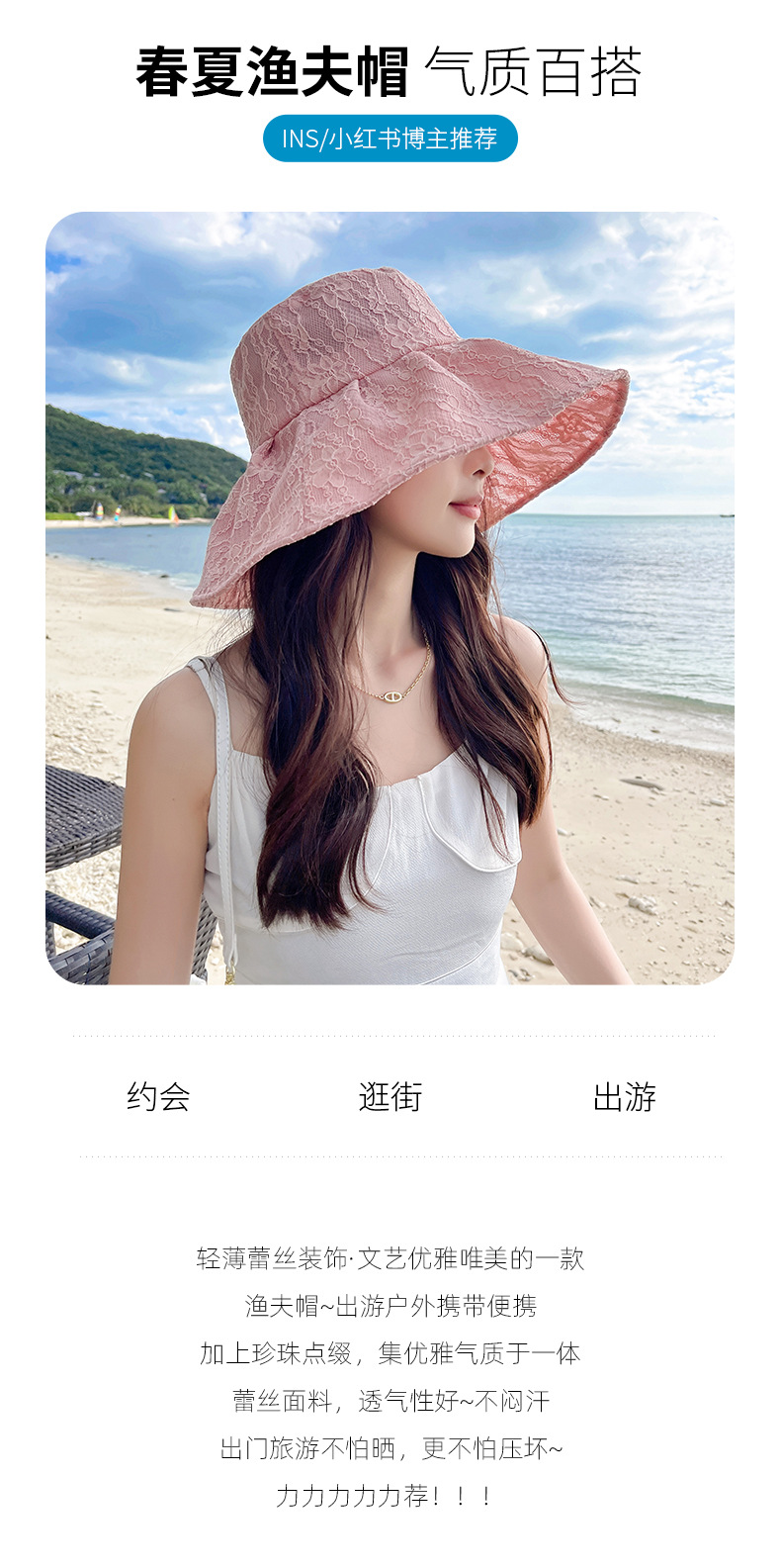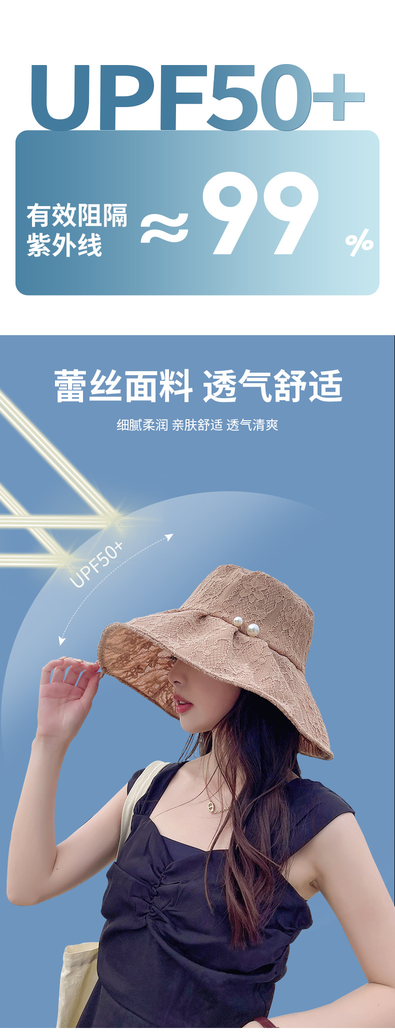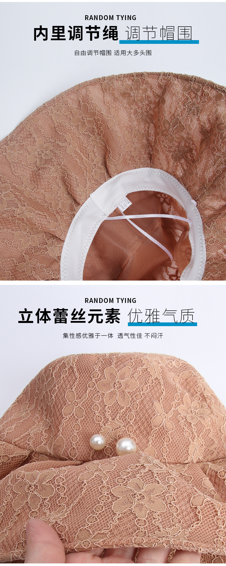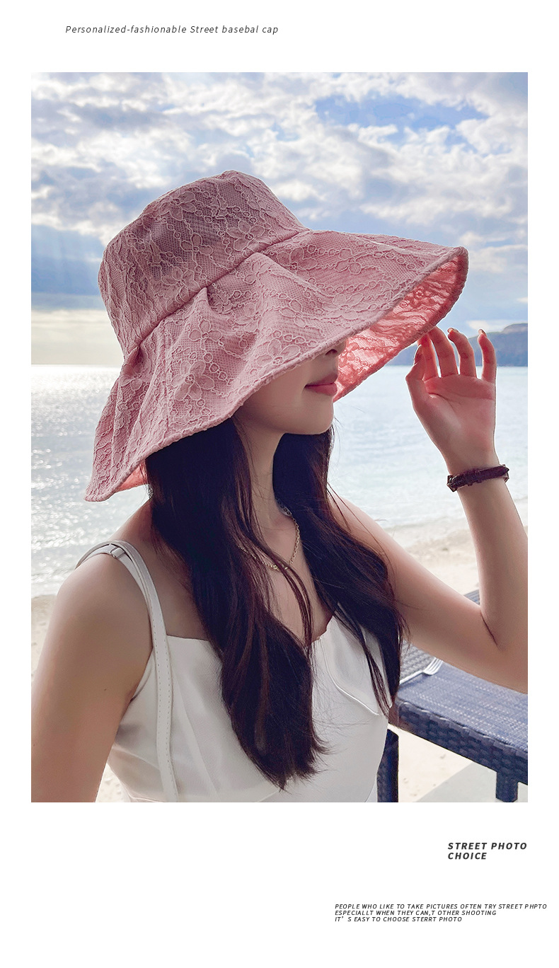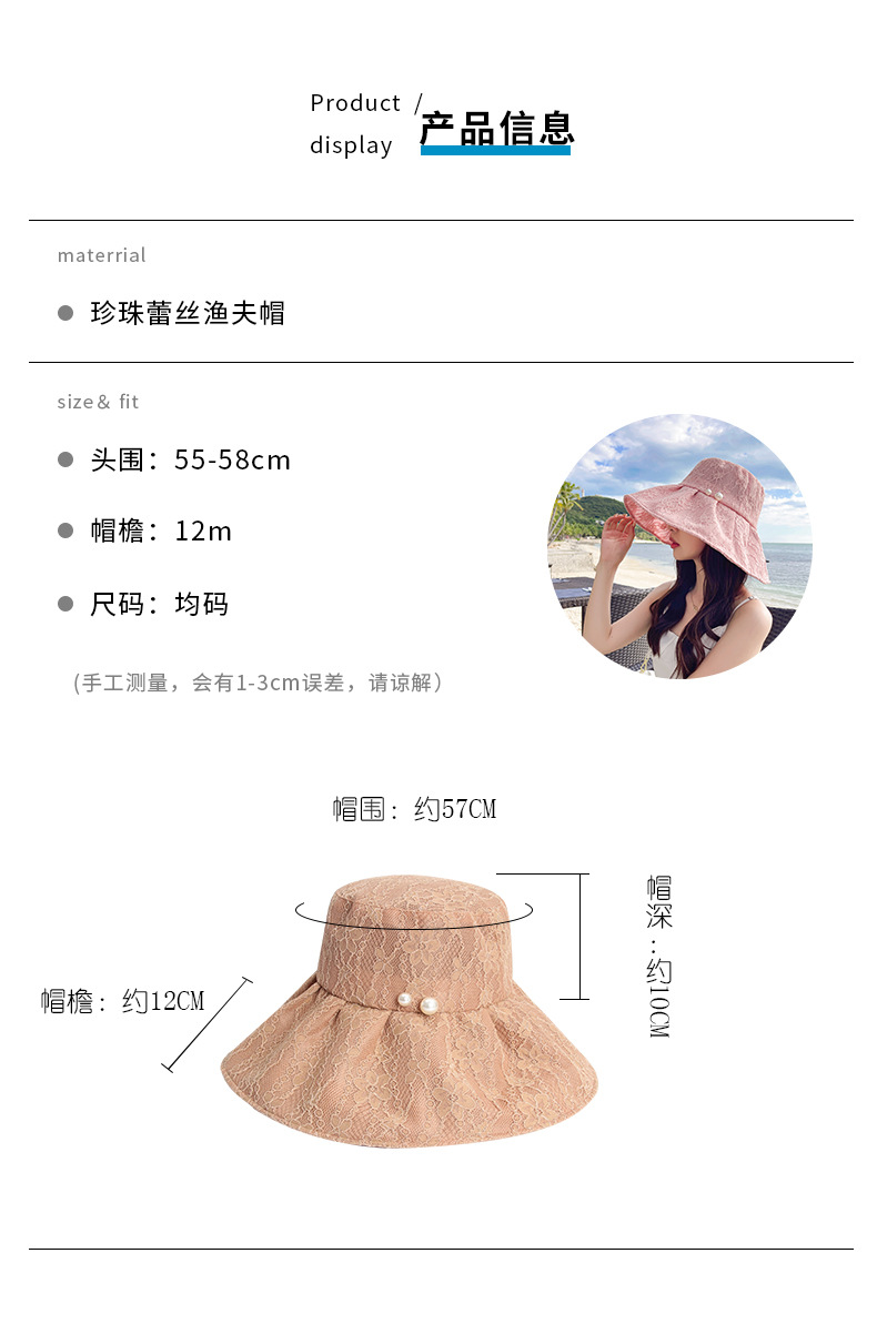 Wholesale of fisherman hats, women's large brim Korean UV sun protection hats, foldable pearl lace hats, summer sun protection hats