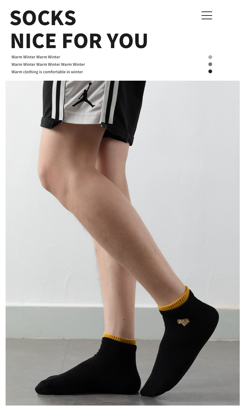 Wholesale of four-season solid color all-cotton boat socks, men's combed cotton lettered men's short socks with double cuffs, black and white socks
