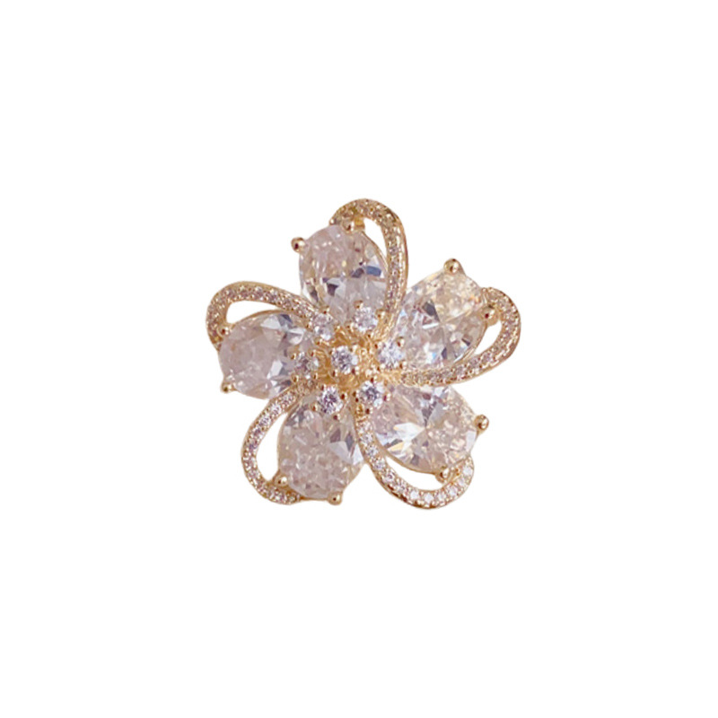 Wholesale of French light luxury, fashionable and high-end brooches slightly studded with zirconium petal buttons, which are unique, exquisite, versatile and super dazzling