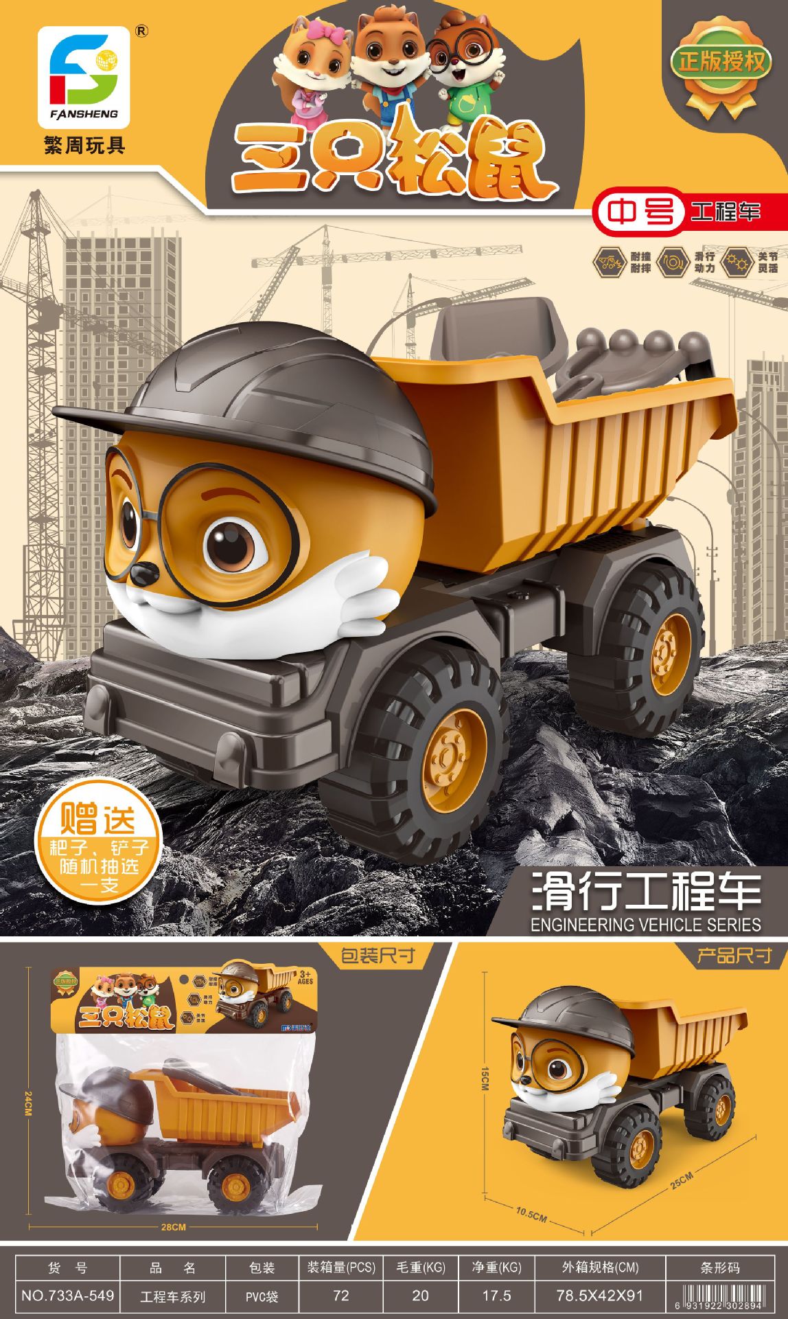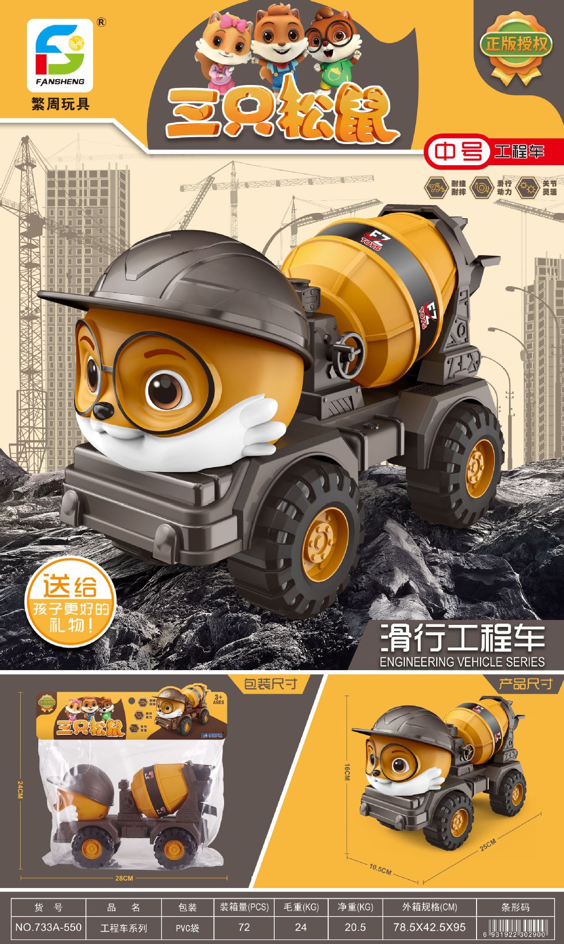 Wholesale of genuine Three Squirrels children's excavators, toy vehicles, engineering vehicles, mixer trucks, and boys' excavators