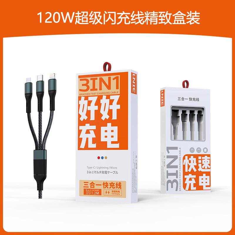 Braided three-in-one 1.2M (fast charging cable)