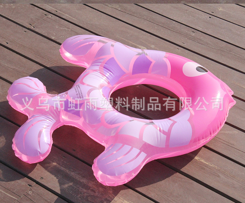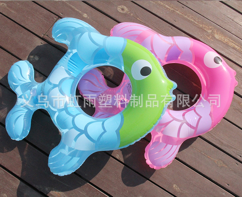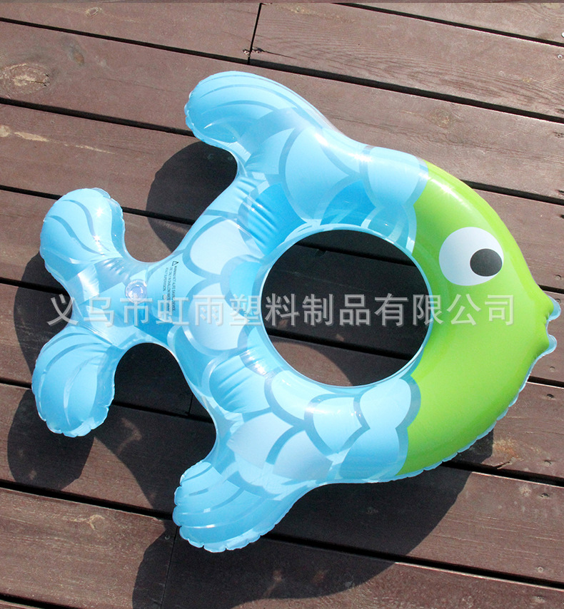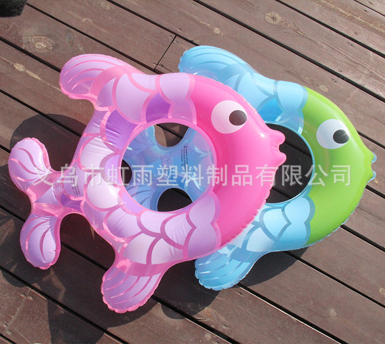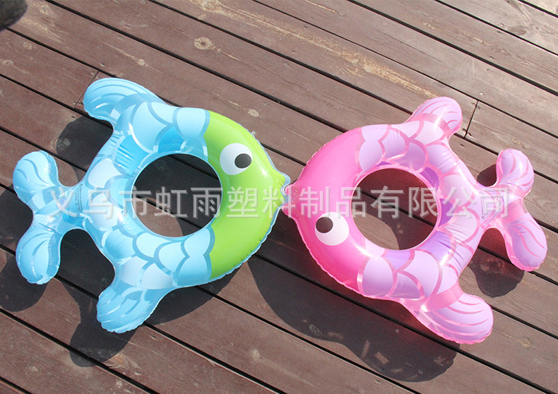 Wholesale of Hongyu Transparent Little Fish inflatable children's swimming rings, pvc cartoon striped underarm rings, 80# fish-shaped swimming rings