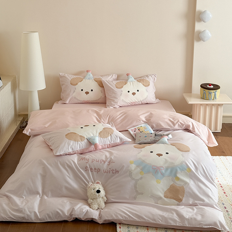 Wholesale of ins cartoon all-cotton washed cotton four-piece set, cute dog bear 3D children's three-piece set bedding