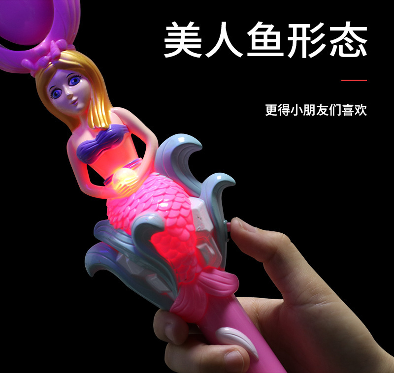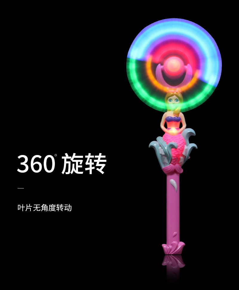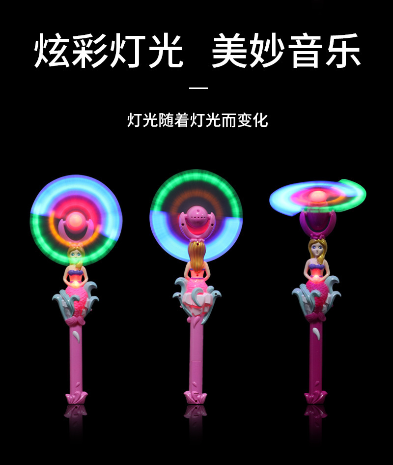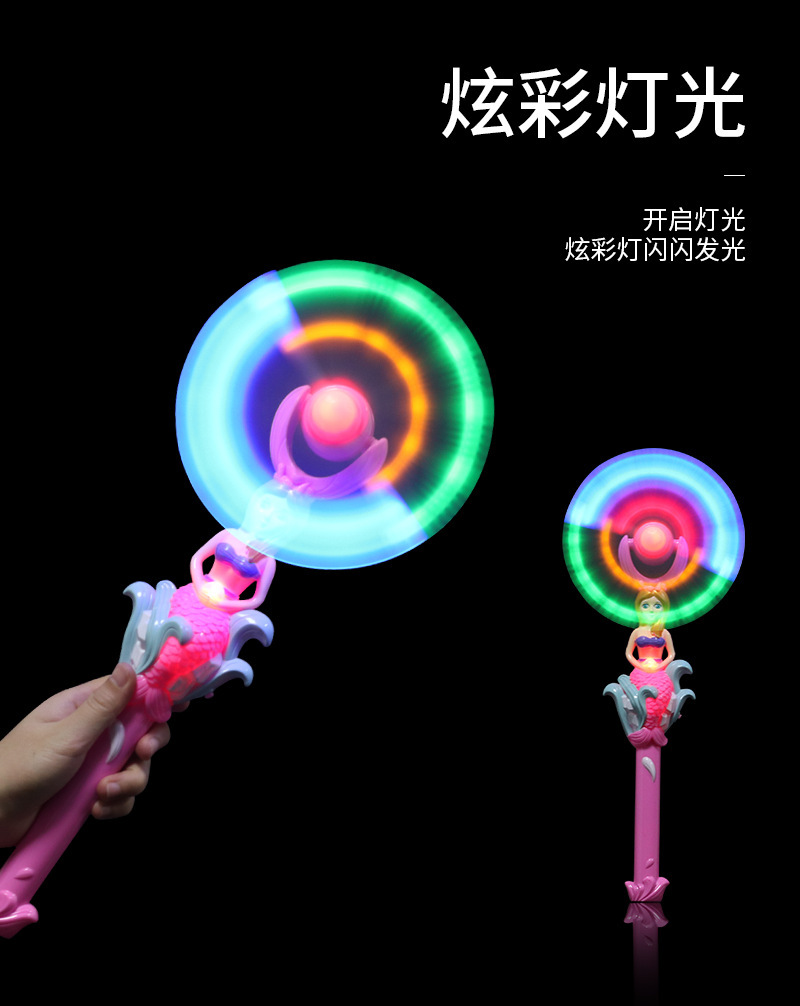Wholesale of internet-famous mermaid electric rotating flashing windmill, children's night market flashing toys, fairy magic windmill rods