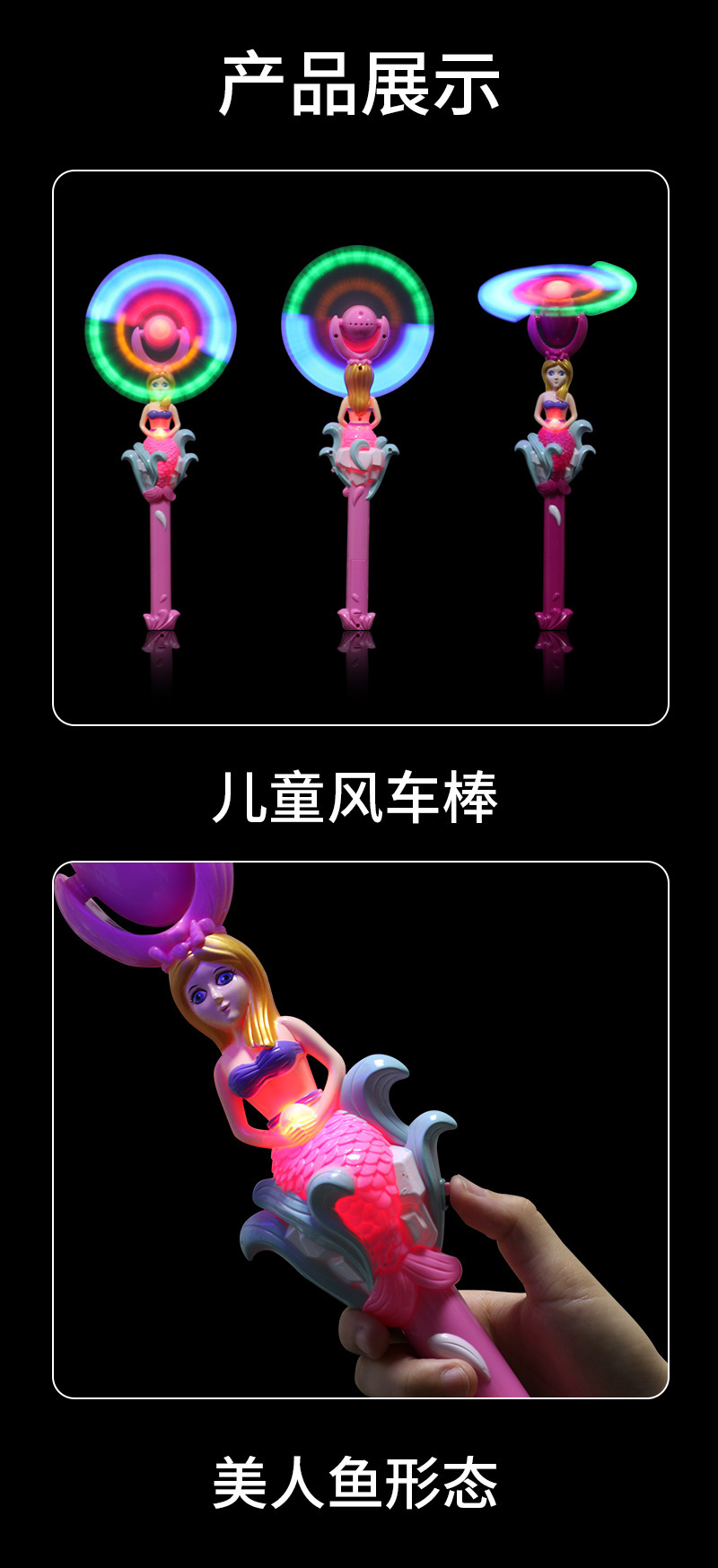 Product Name: Mermaid Glowing Windmill Box Number: 192 pieces Box Size: 78*45.5*72CM