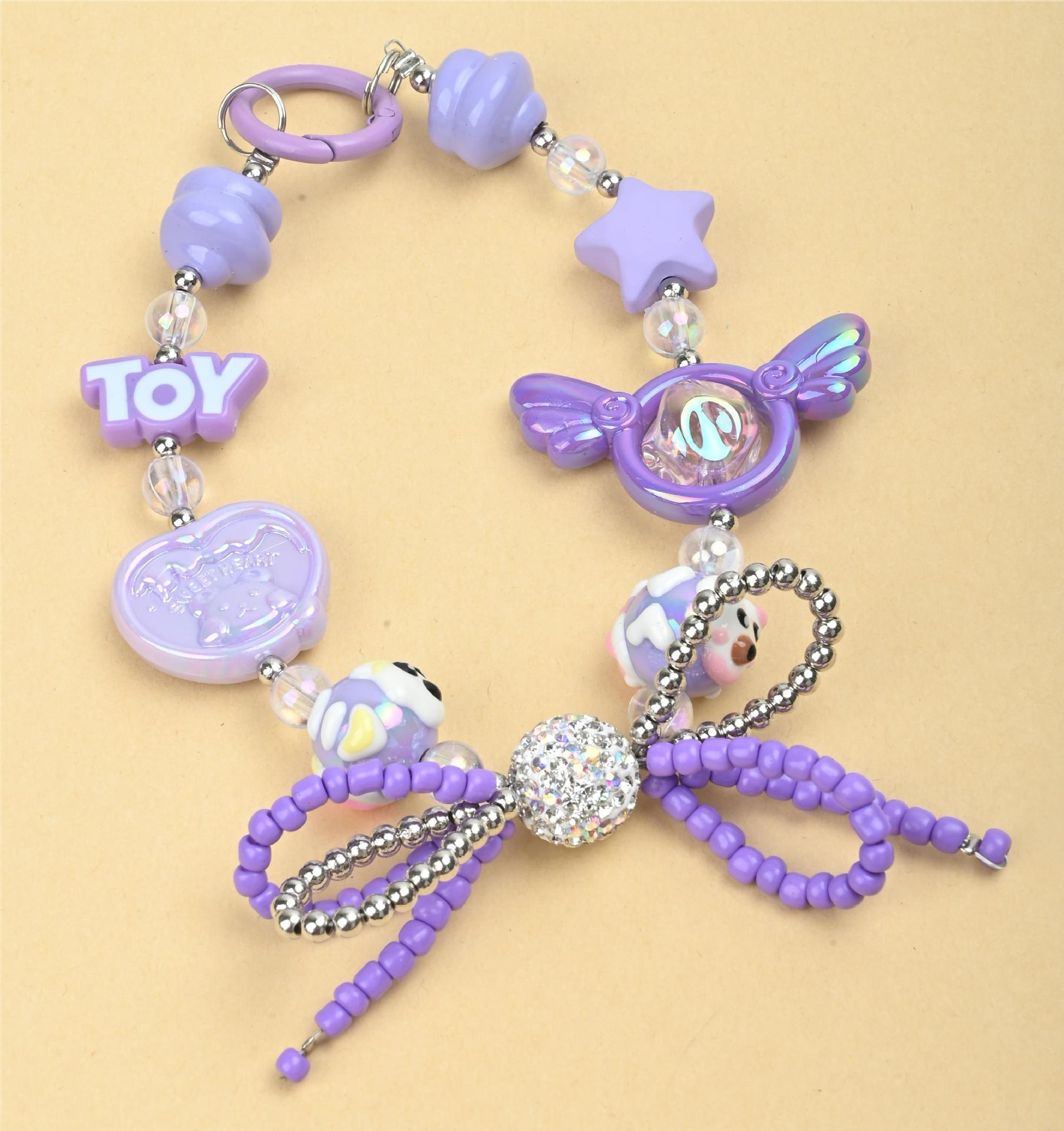 Wholesale of irregular handcrafted beaded diamond balls, double-layer bow ties, mobile phone chains, keys, bags and pendants in the Japanese and Korean ins style
