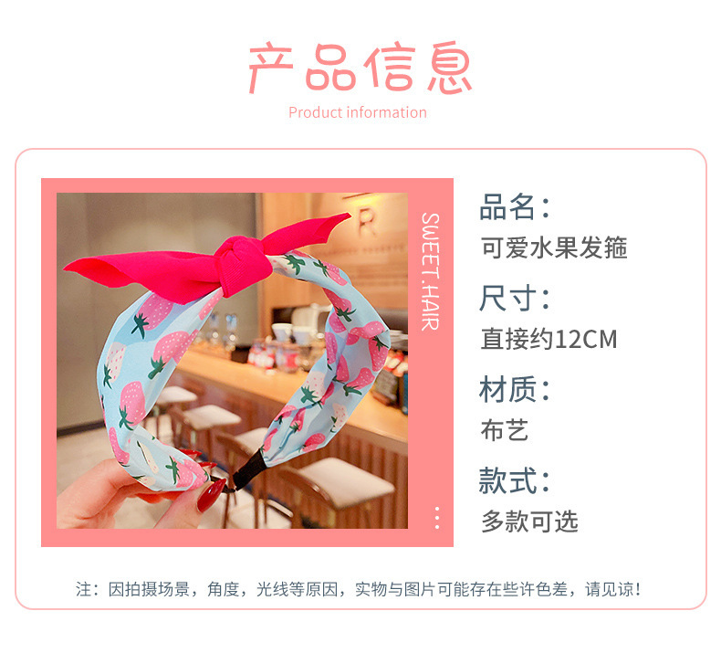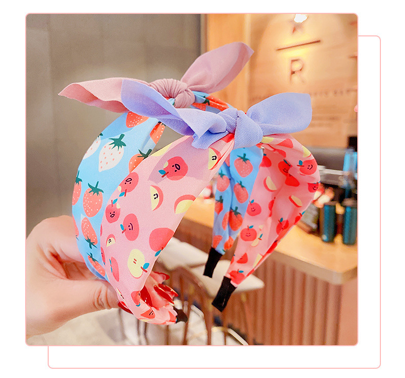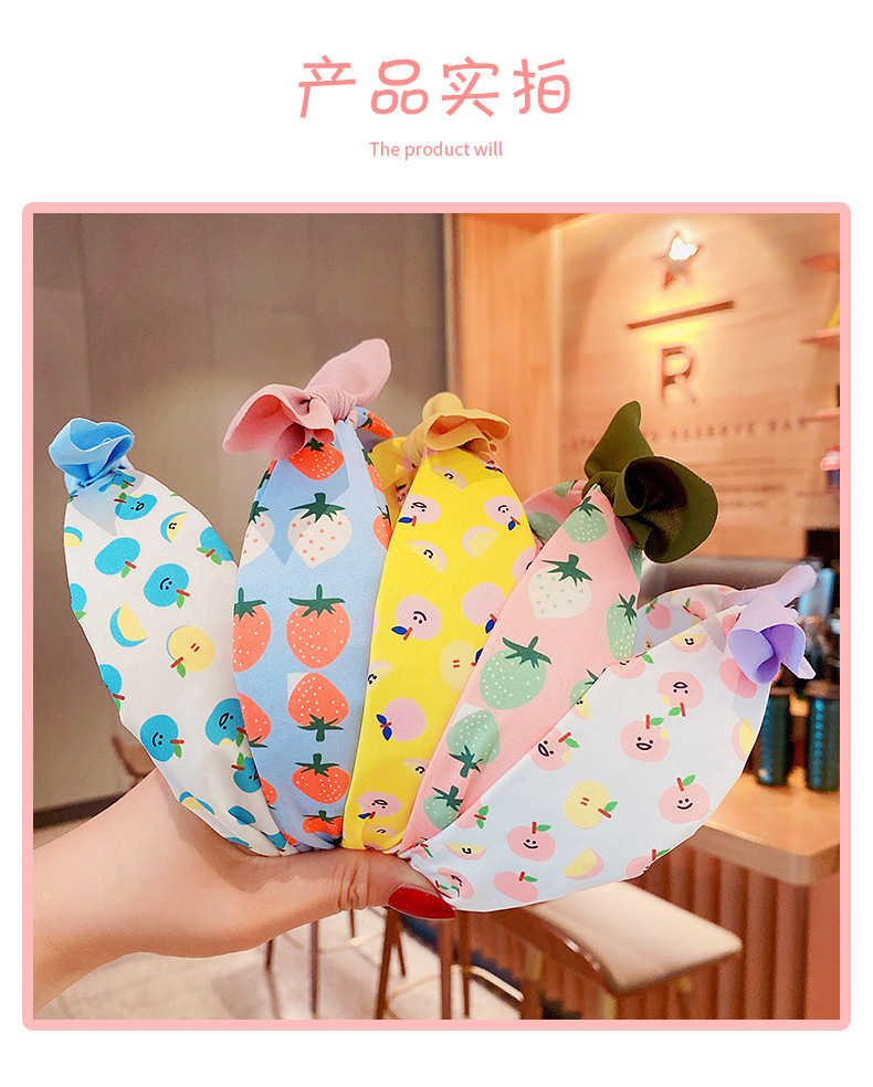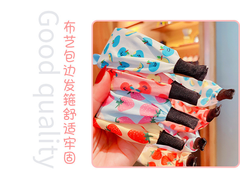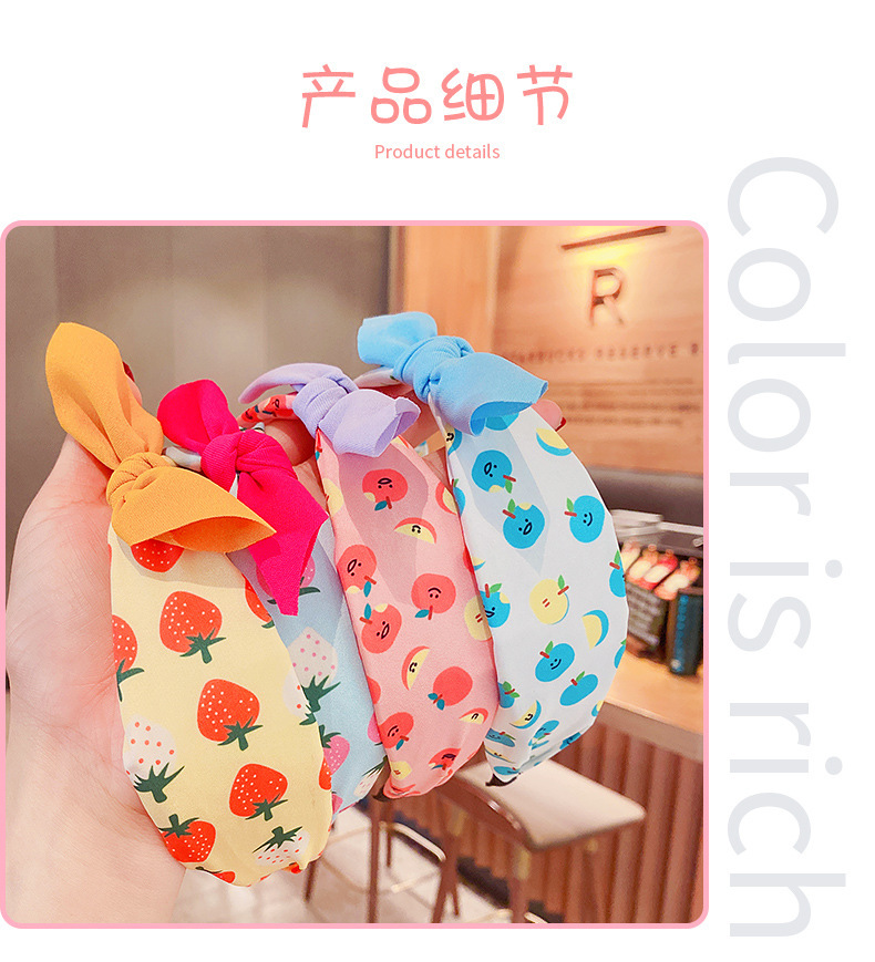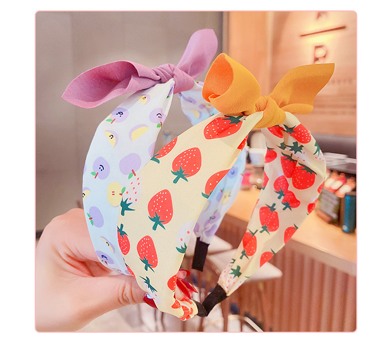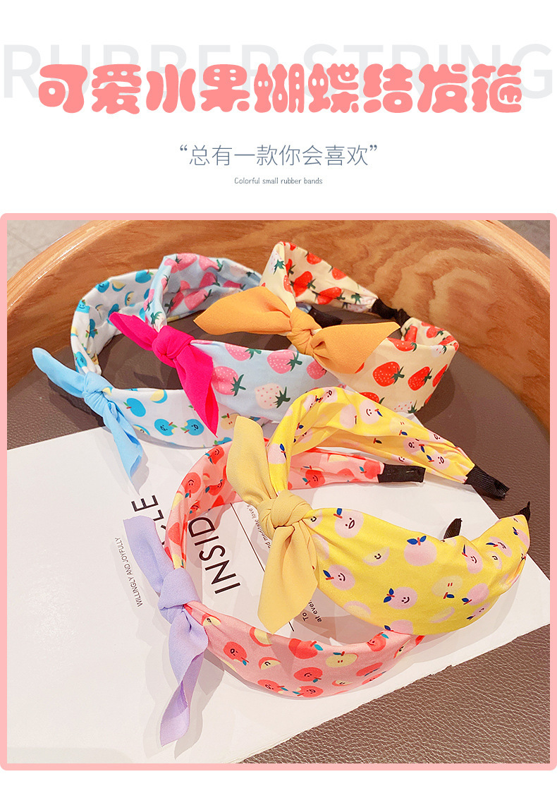 Wholesale of Korean-style children's fruit hair bands that do not damage the headband, wide-edge fabric hair clips, girls' bow hair compression headwear