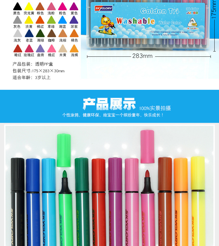 Wholesale of large-capacity baby doodling brushes, 36-color watercolor pens, and special painting supplies for children's art