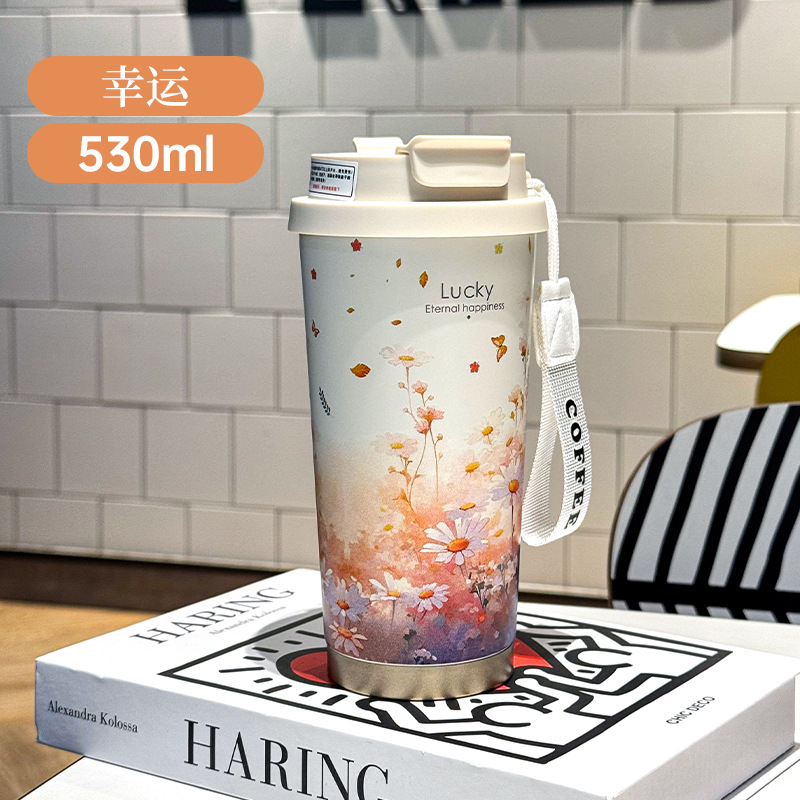 Double Drink Coffee Cup 530ML Small Chrysanthemum (5D process)