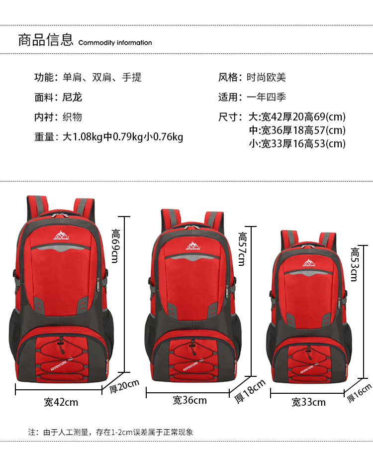 Wholesale of large-capacity men's backpacks for travel, outdoor cycling sports backpacks, and portable hiking bags for leisure travel