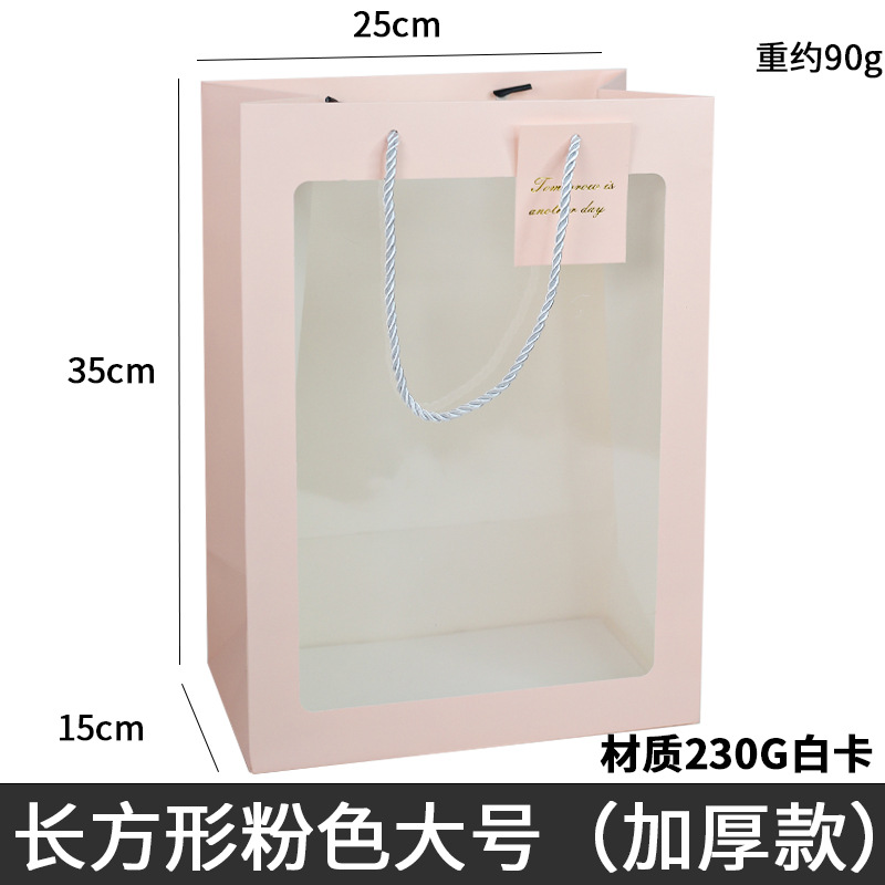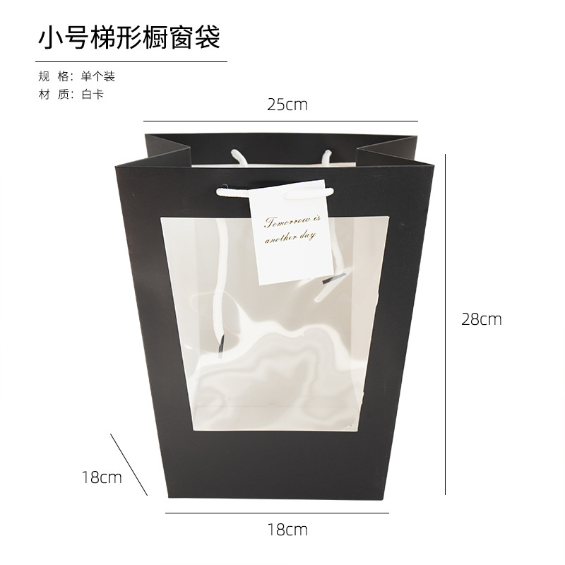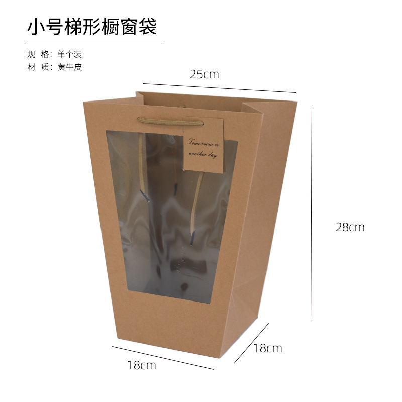 Wholesale of large cowhide trapezoidal handbags, transparent window bags, toy bags, showcase bags, flower packaging and gift bags