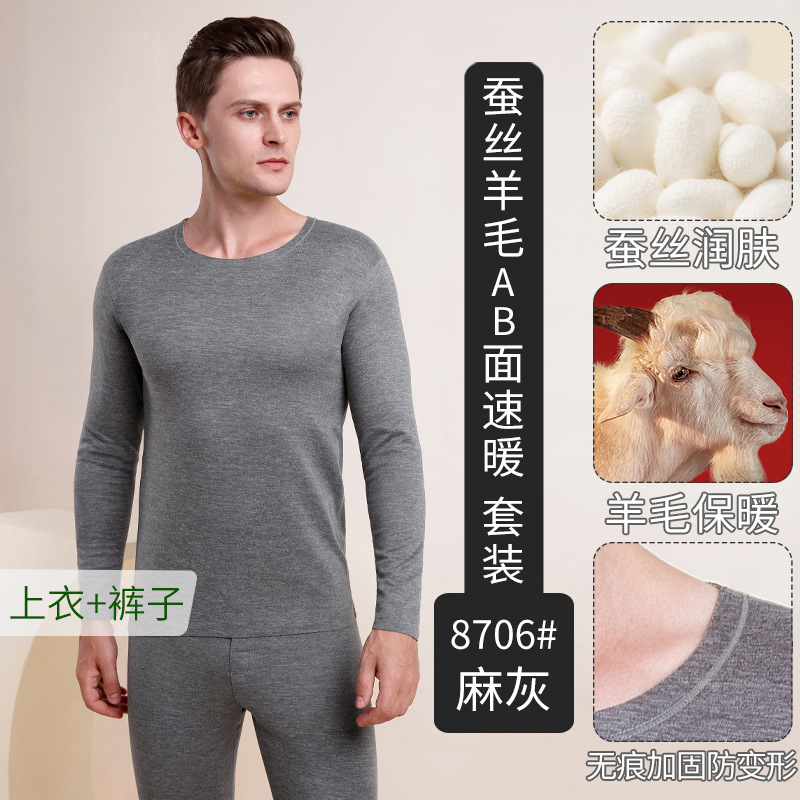 Wholesale of men's wool and silk thermal underwear sets, German velvet long Johns, men's seamless heating long Johns, and women's base layer