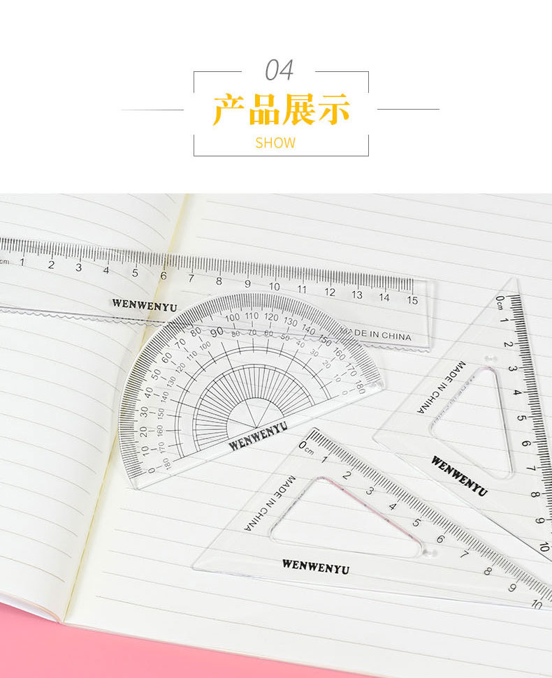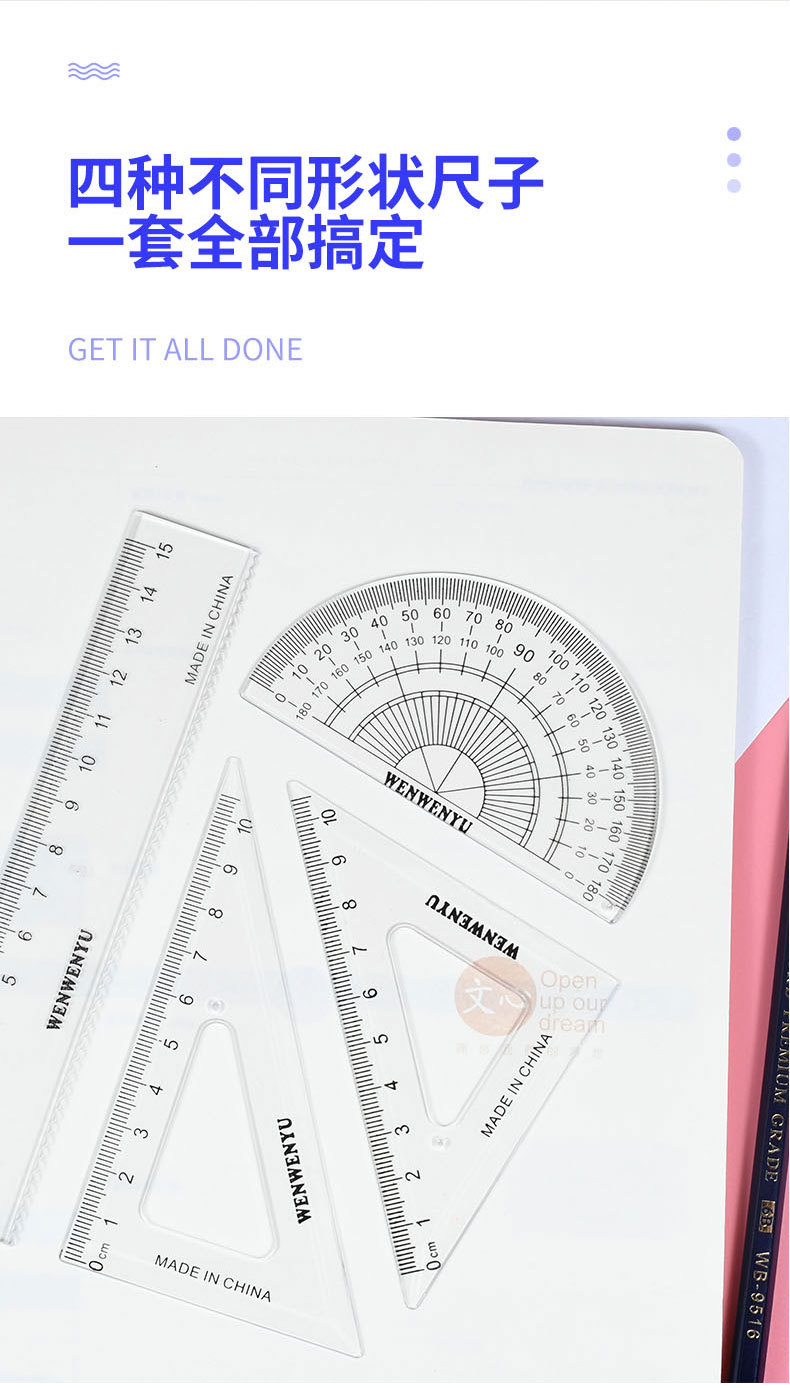 Wholesale of multi-functional transparent set rulers for primary school students' examination protractors and drawing special sets