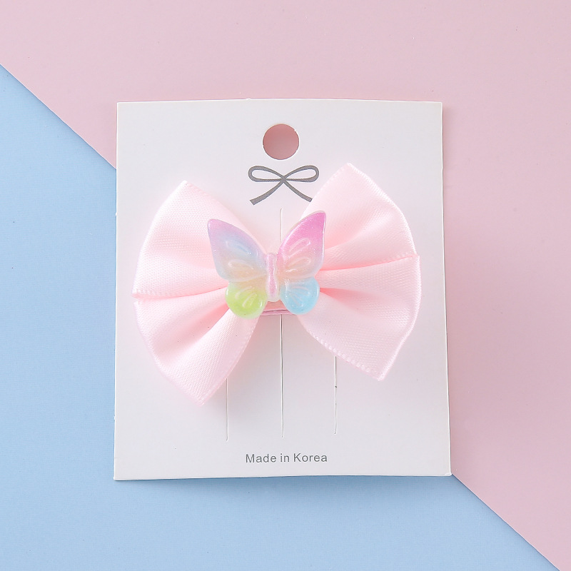 Wholesale of new children's pink bow Ins-style colorful butterfly resin cute and fashionable hair clip accessories