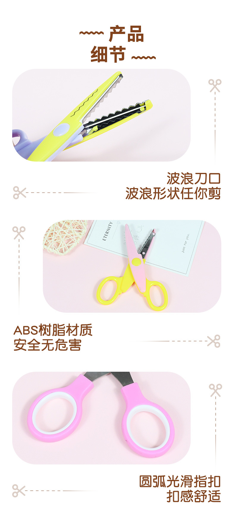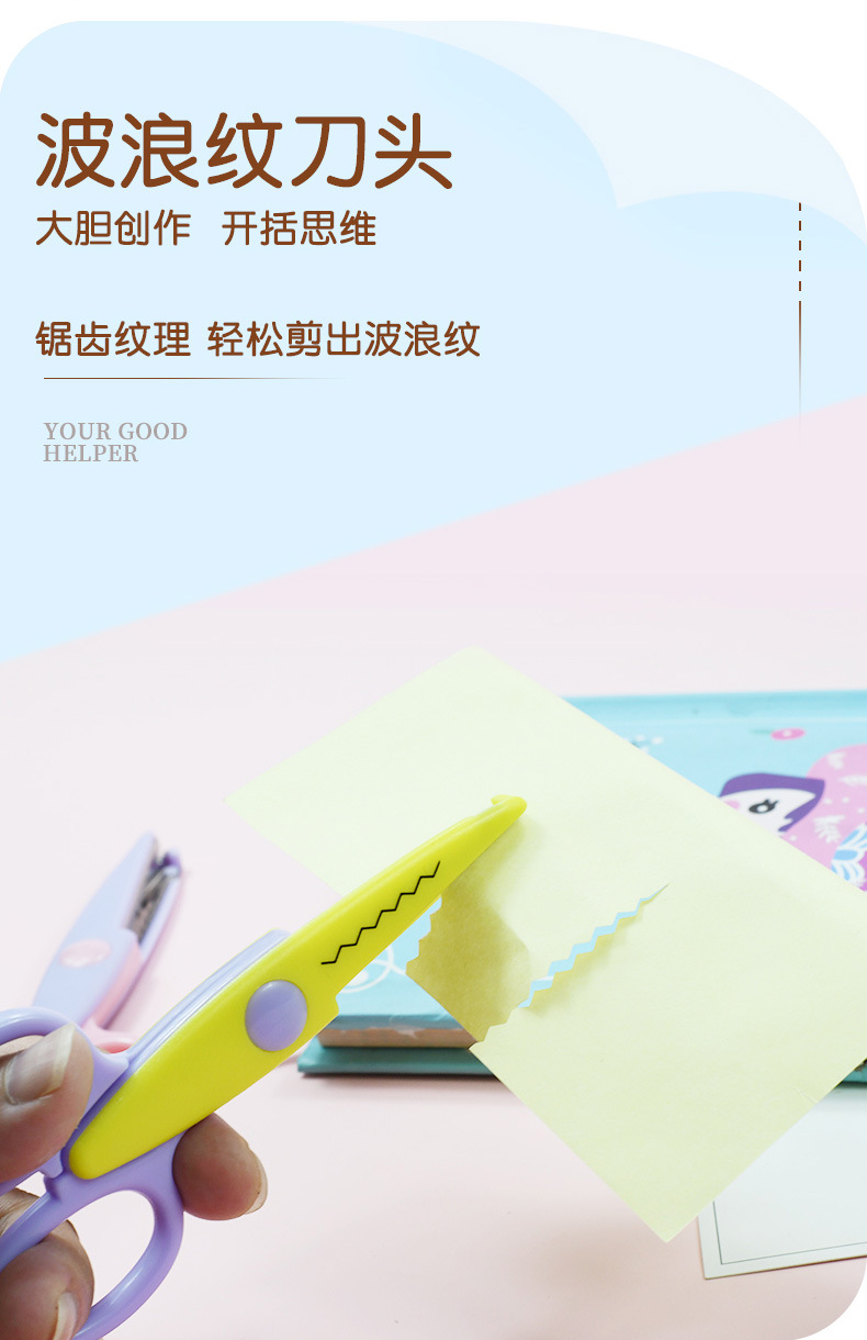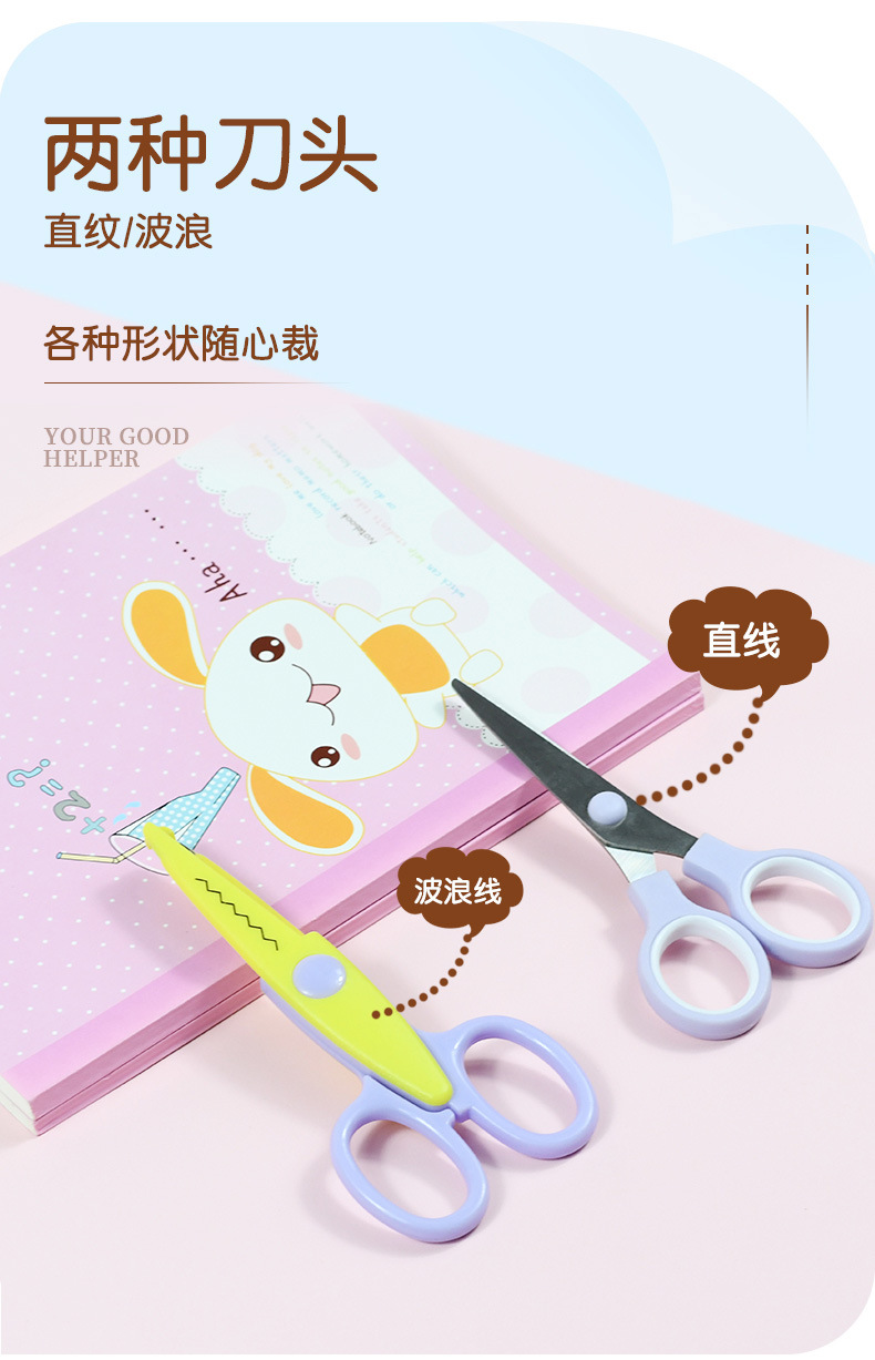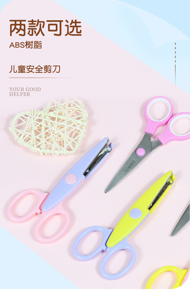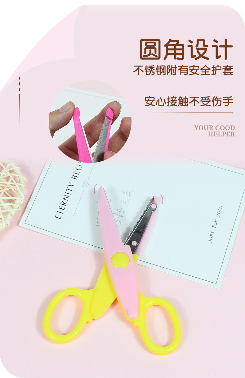 Wholesale of new children's stainless steel lace scissors, creative plastic paper cutting scissors for student DIY art classes