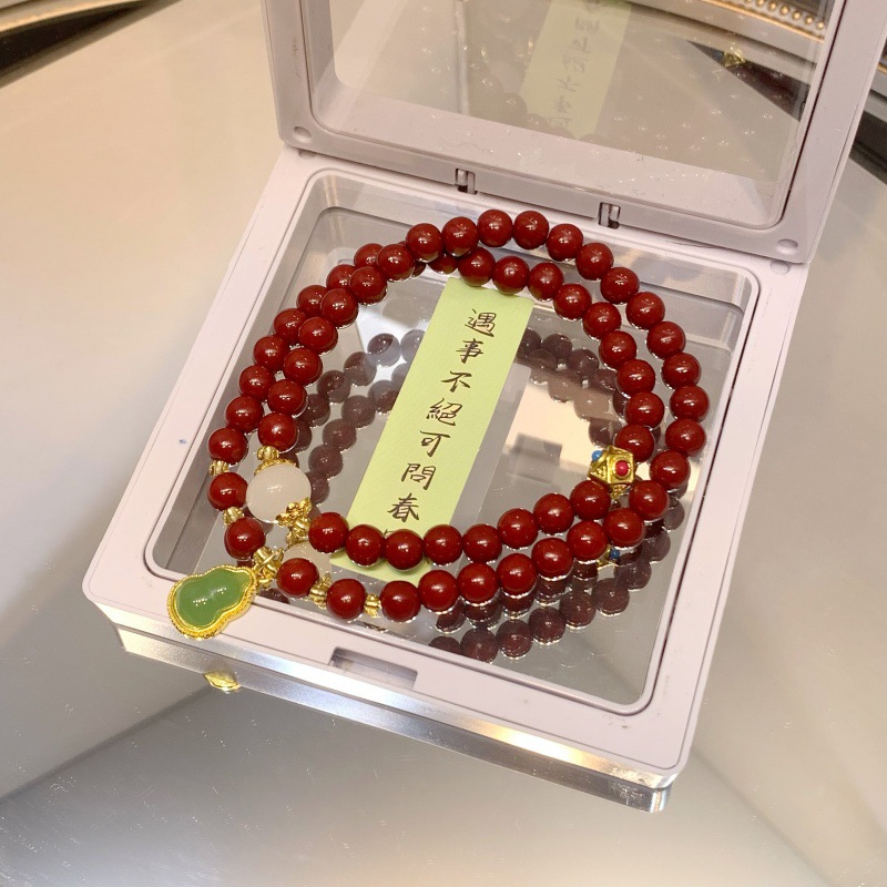 Wholesale of new Chinese-style imitation cinnabar bracelets, double-layer beaded and folded band bracelets, best-selling cultural and creative products on Xiaohongshu