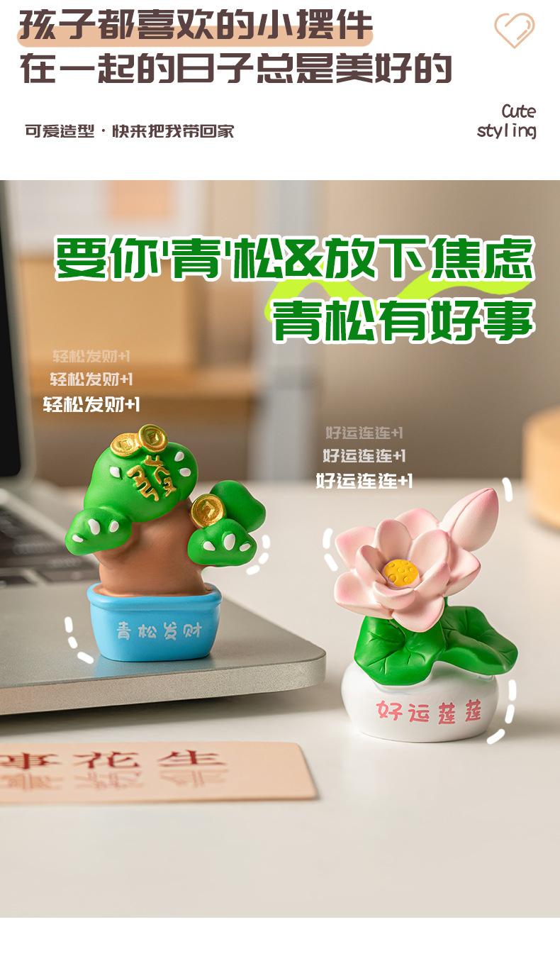 Wholesale of new creative gifts, "Money Flower" office desktop ornaments, soothing and stress-relieving decorative resin craft small ornaments