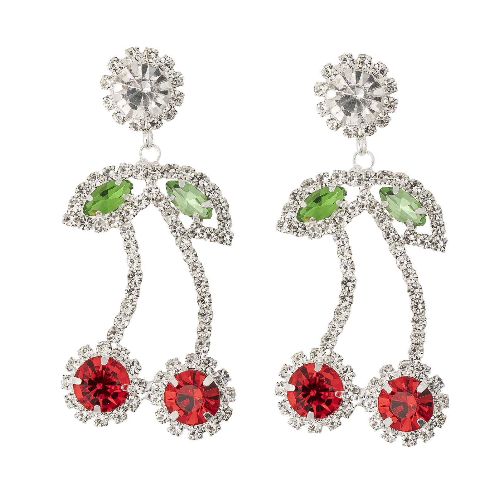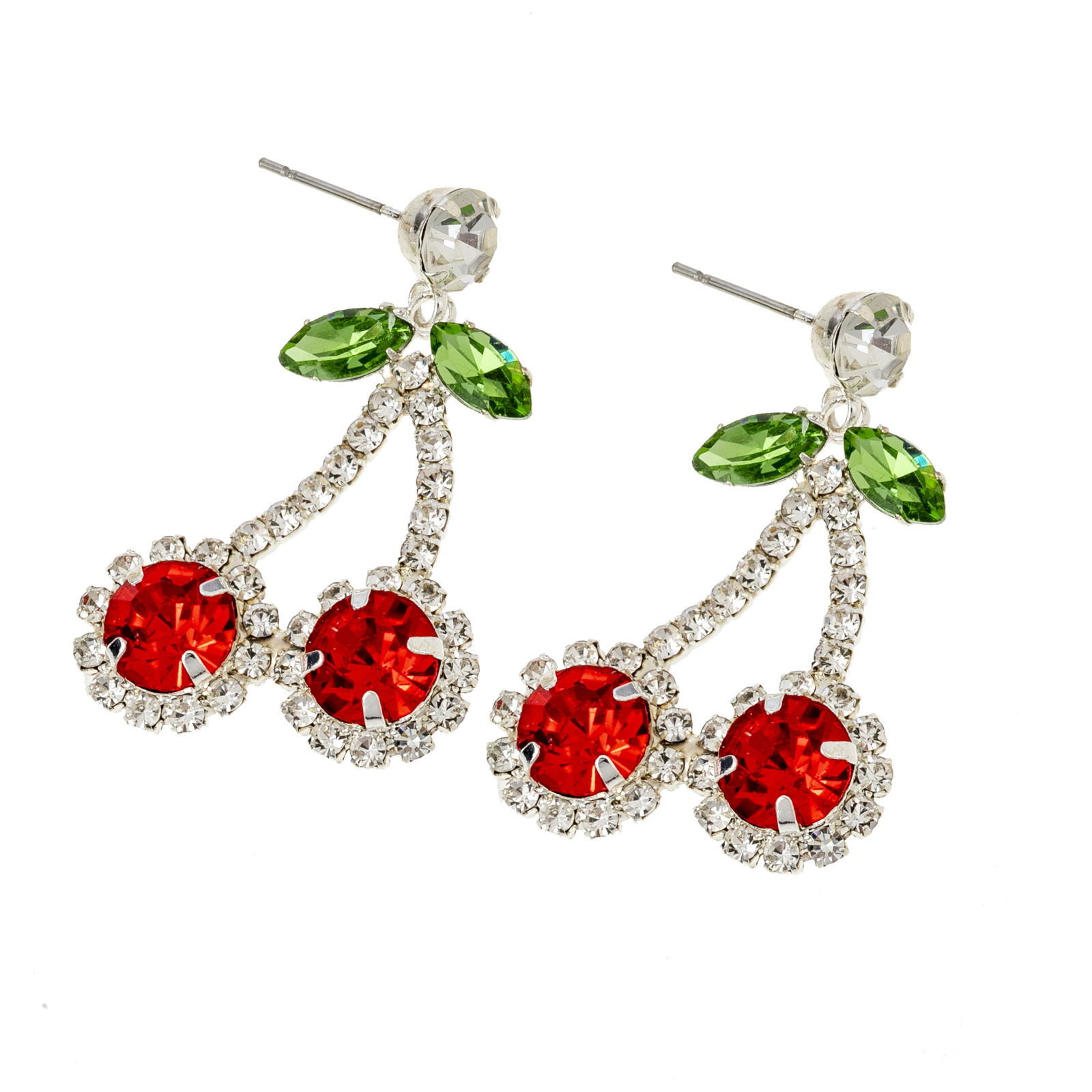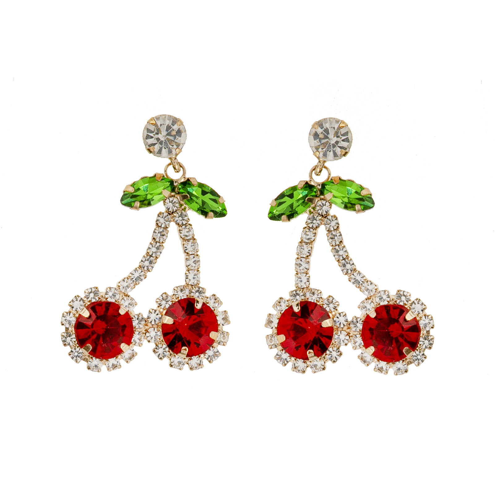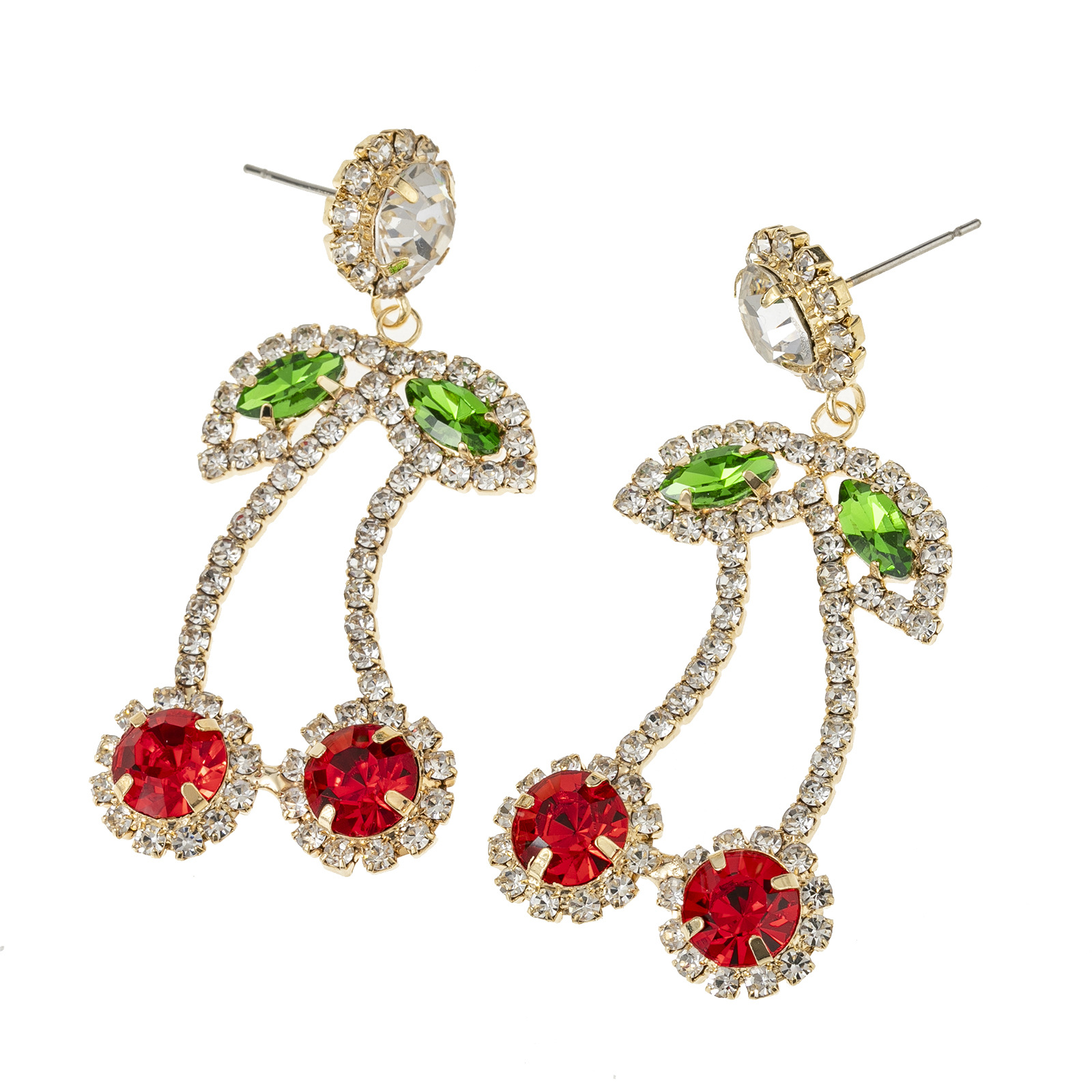 Wholesale of new cross-border European and American fashion red cherry rhinestone earrings, women's design sense and personality pendant with diamond setting