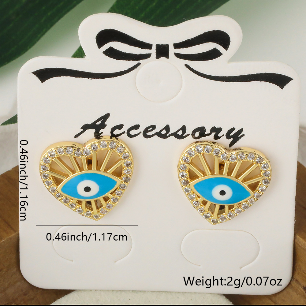 Wholesale of new cross-border Turkish women's geometric heart-shaped oiled Devil's Eye ear stud personalized earrings