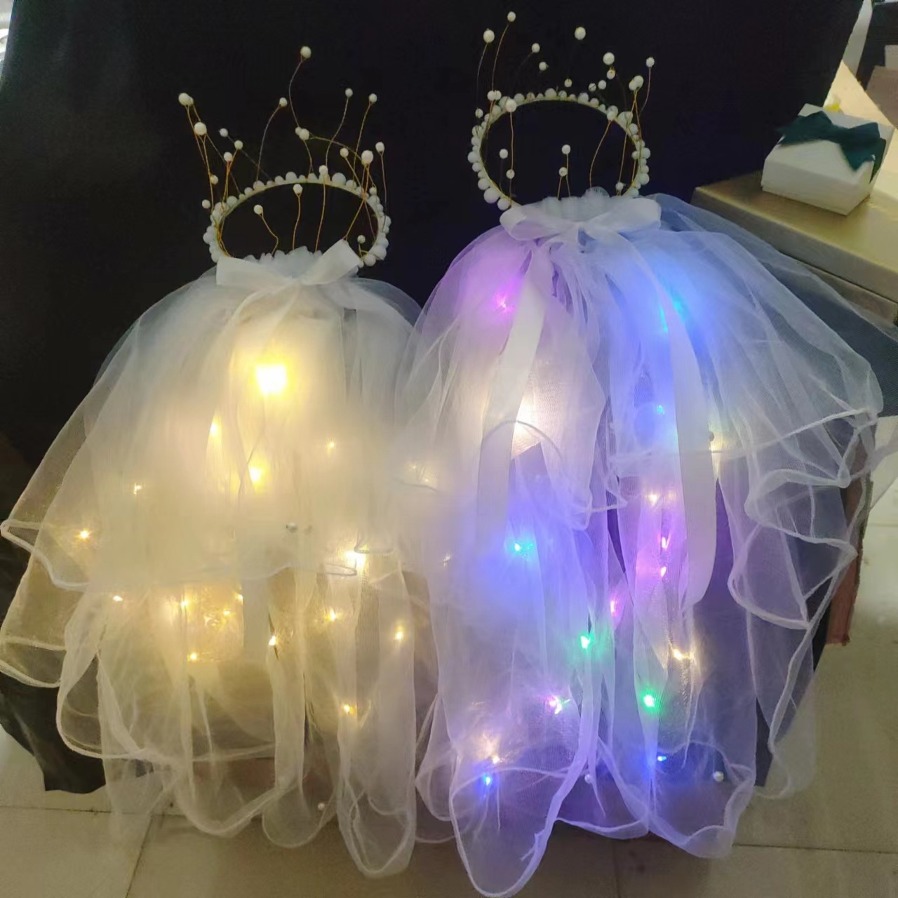 Wholesale of new internet-famous luminous headscarves, street vending with lights, princesses getting married, brides taking wedding photos, adults and children