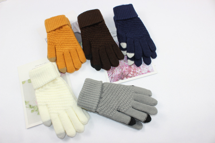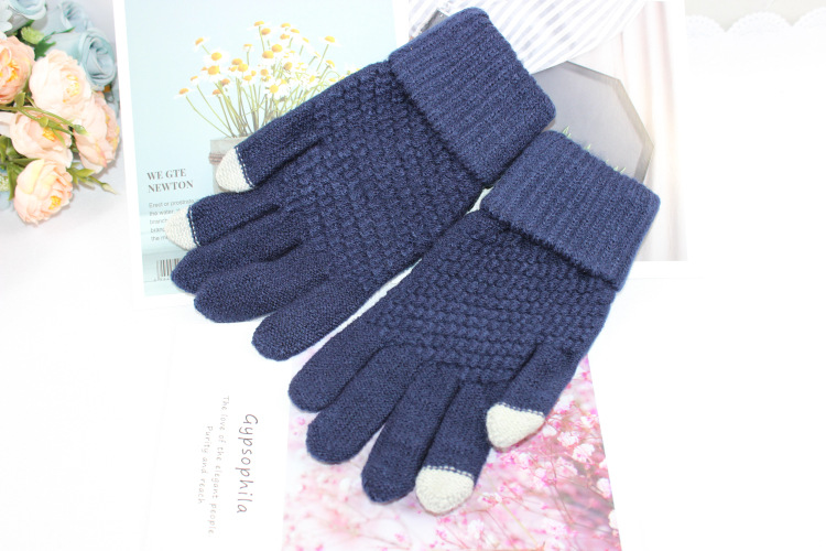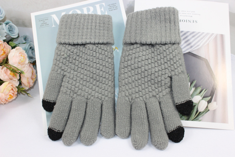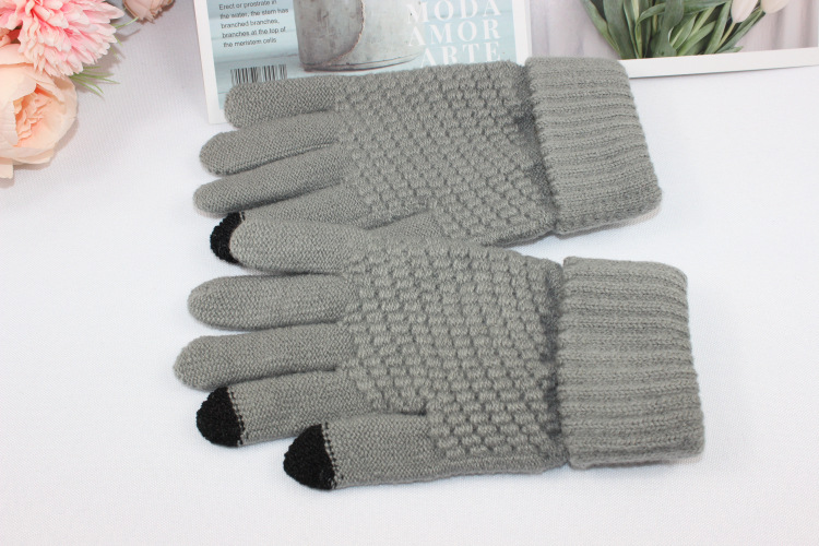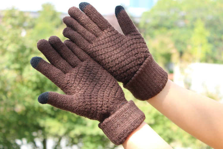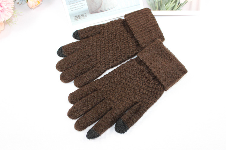 Wholesale of new men's and women's fleece gloves, autumn and winter cold-proof and warm knitted gloves, touch screen woolen gloves
