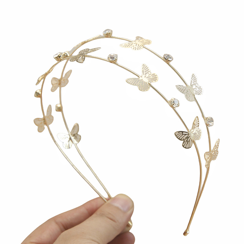 Wholesale of new multi-layer metal star moon crystal hair bands, women's butterfly hair accessories, children's headwear, and double-layer headbands