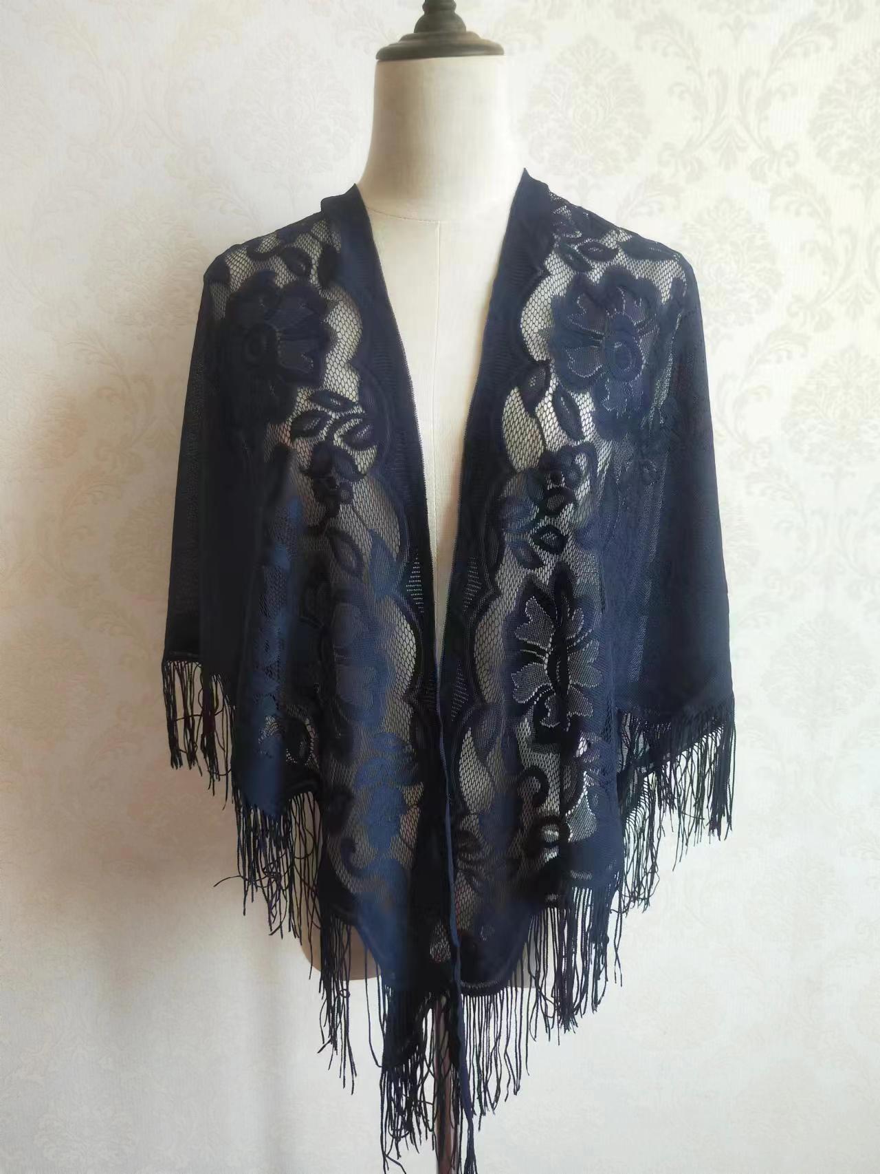 Wholesale of new spring and autumn silk scarves, thin lace triangular scarves, women's outerwear, cheongsams, Hanfu shawls, tassels and headscarves