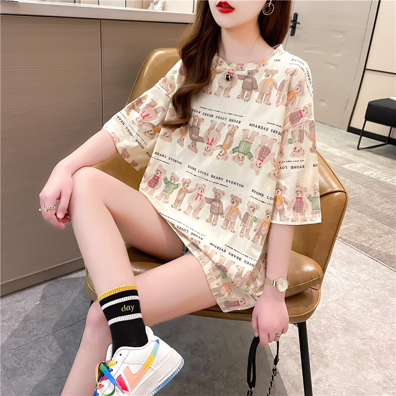 Wholesale of new summer short-sleeved T-shirts for women, loose and large-sized mid-length T-shirts for women, and women's clothing for night market stalls