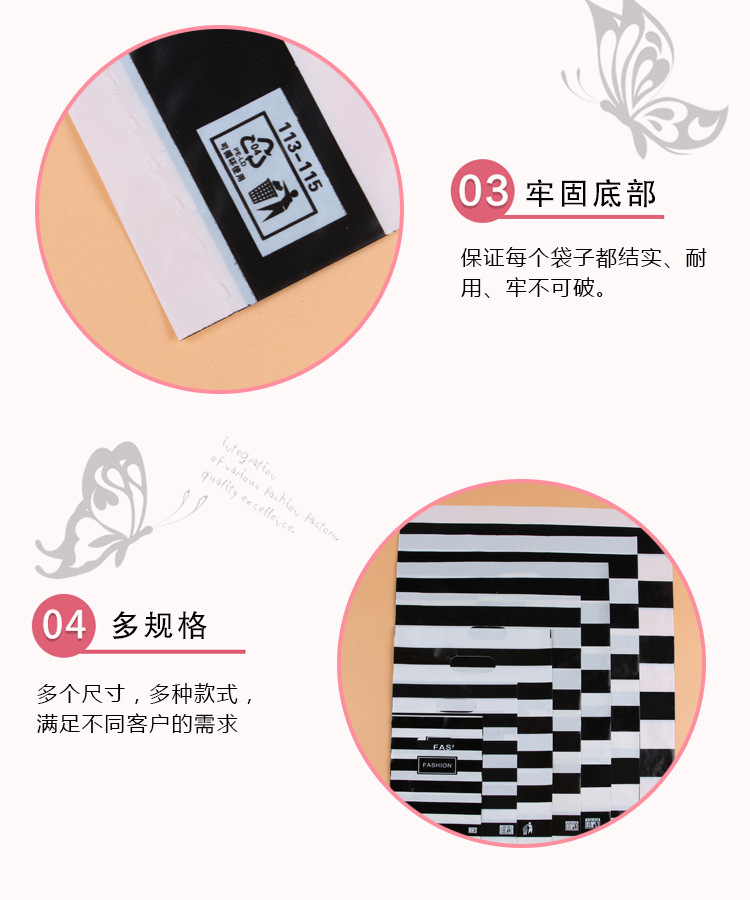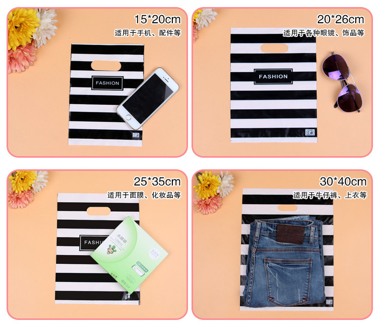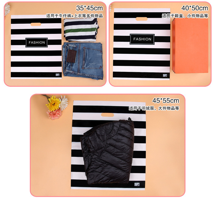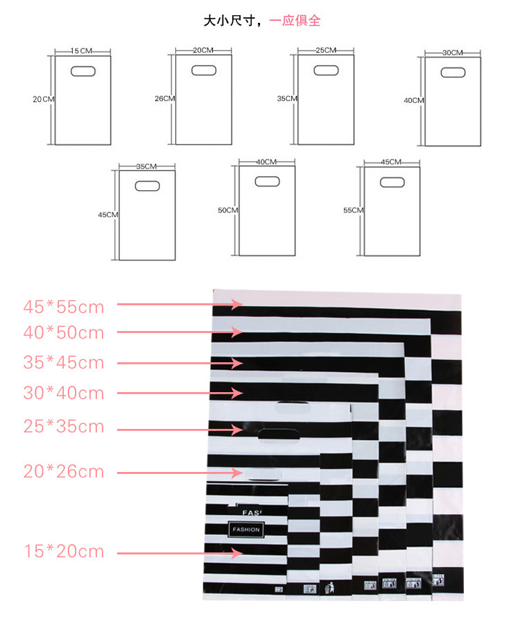 Wholesale of plastic bags in stock, including large, medium and small plastic packaging handbags, men's, women's and children's clothing, gift bags for clothing stores