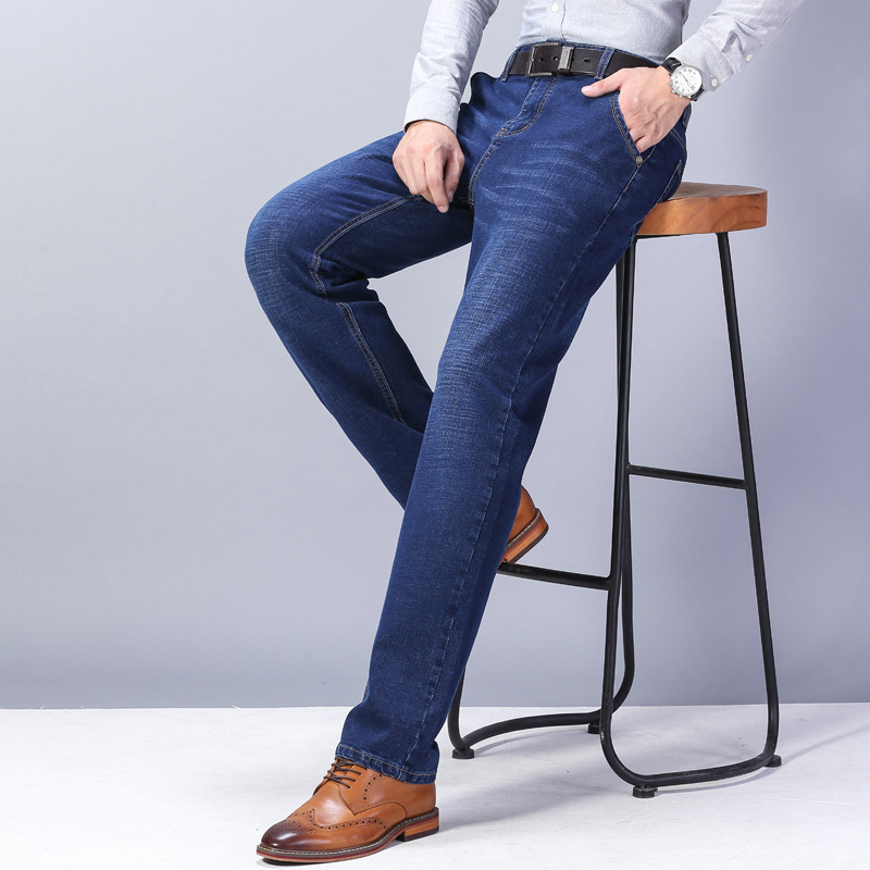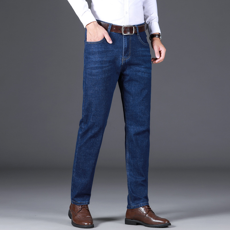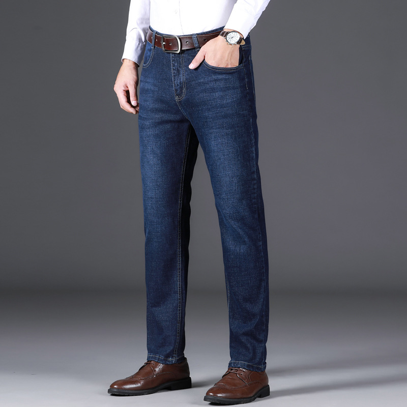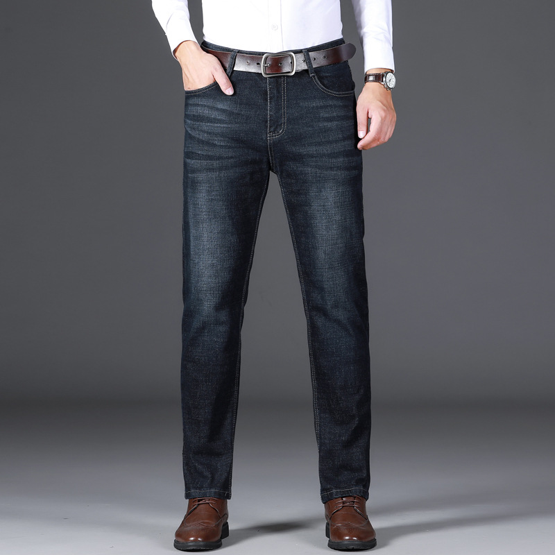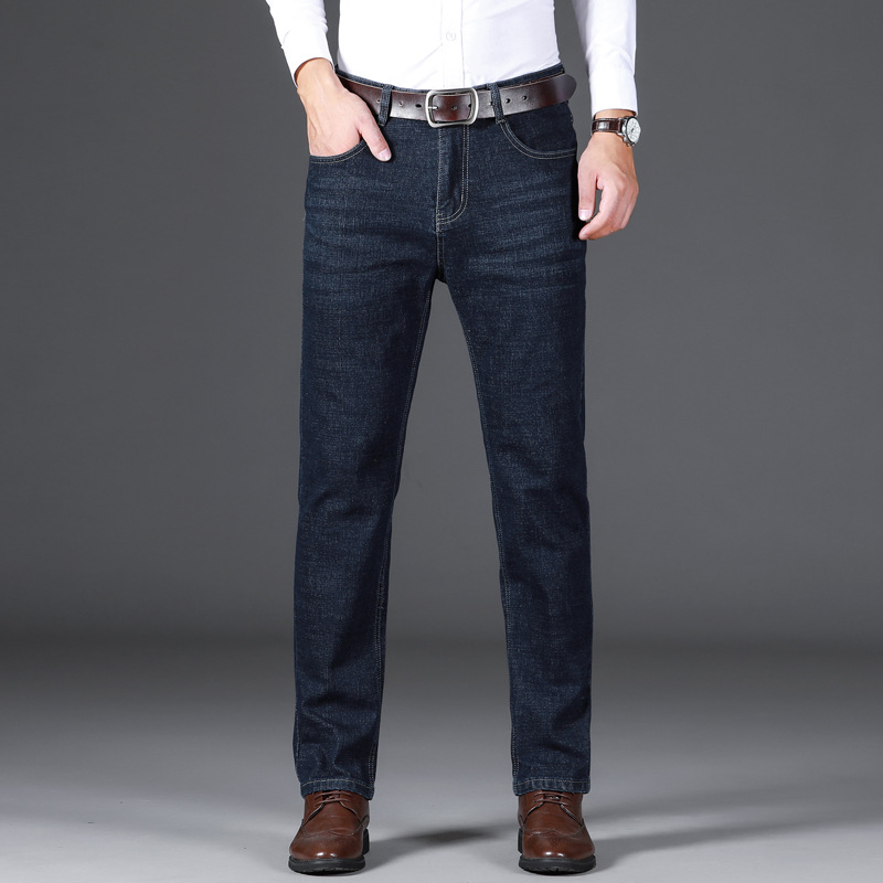 Wholesale of popular autumn and winter thick stretch straight-leg jeans, men's business loose, middle-aged and elderly casual large-sized long pants