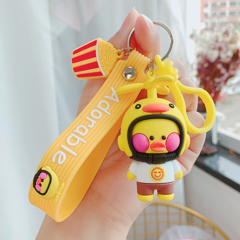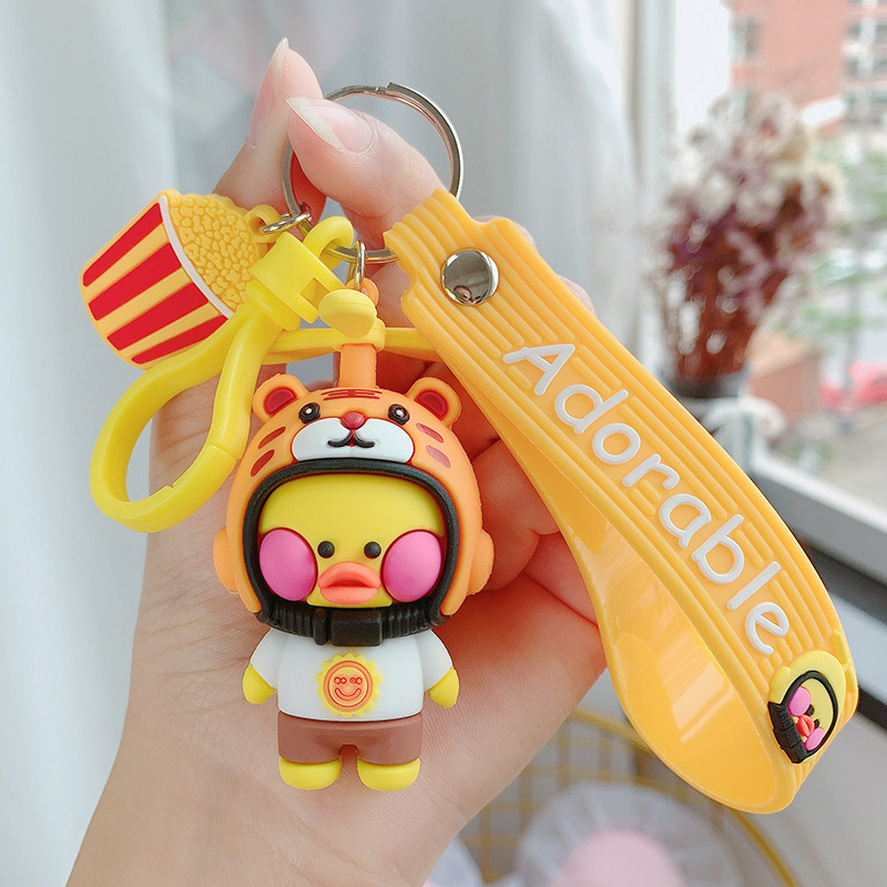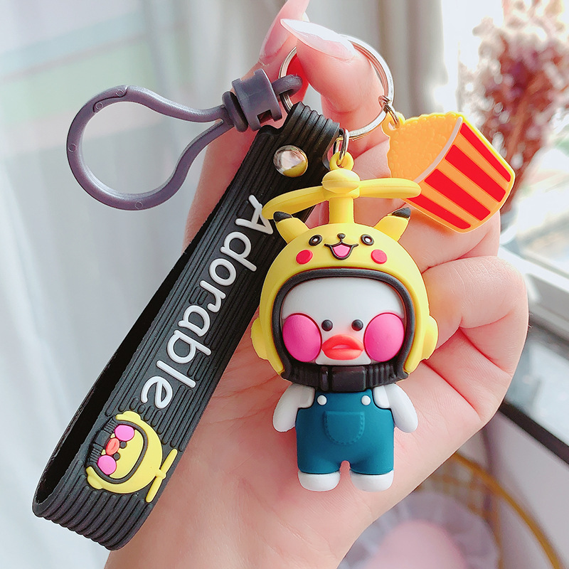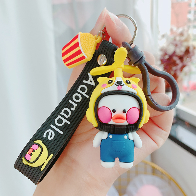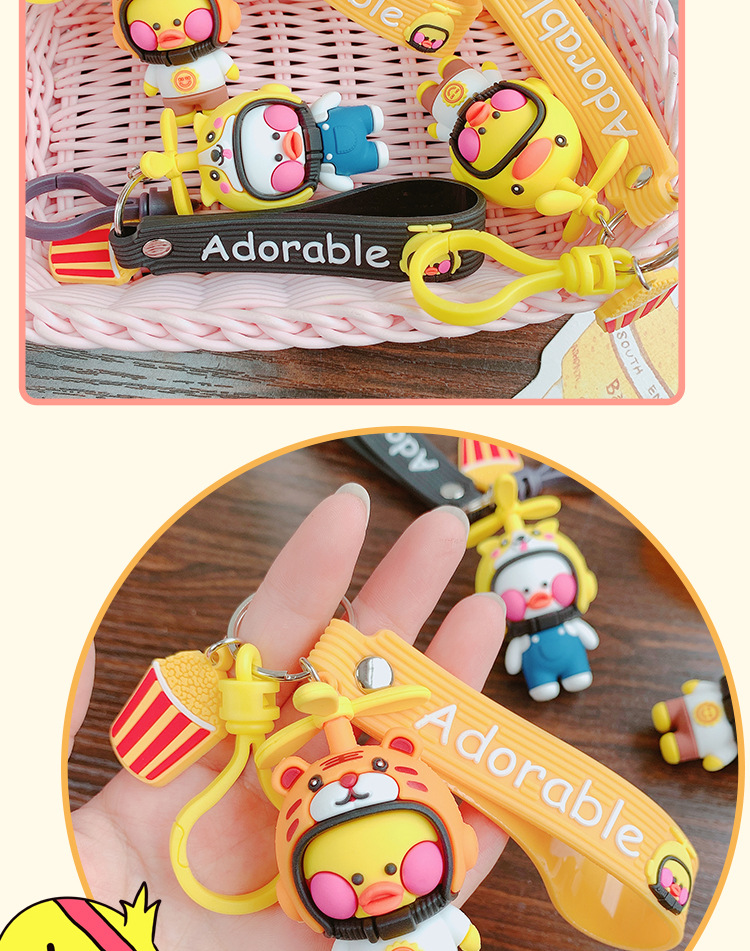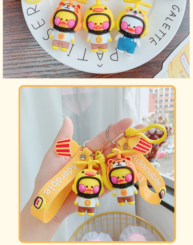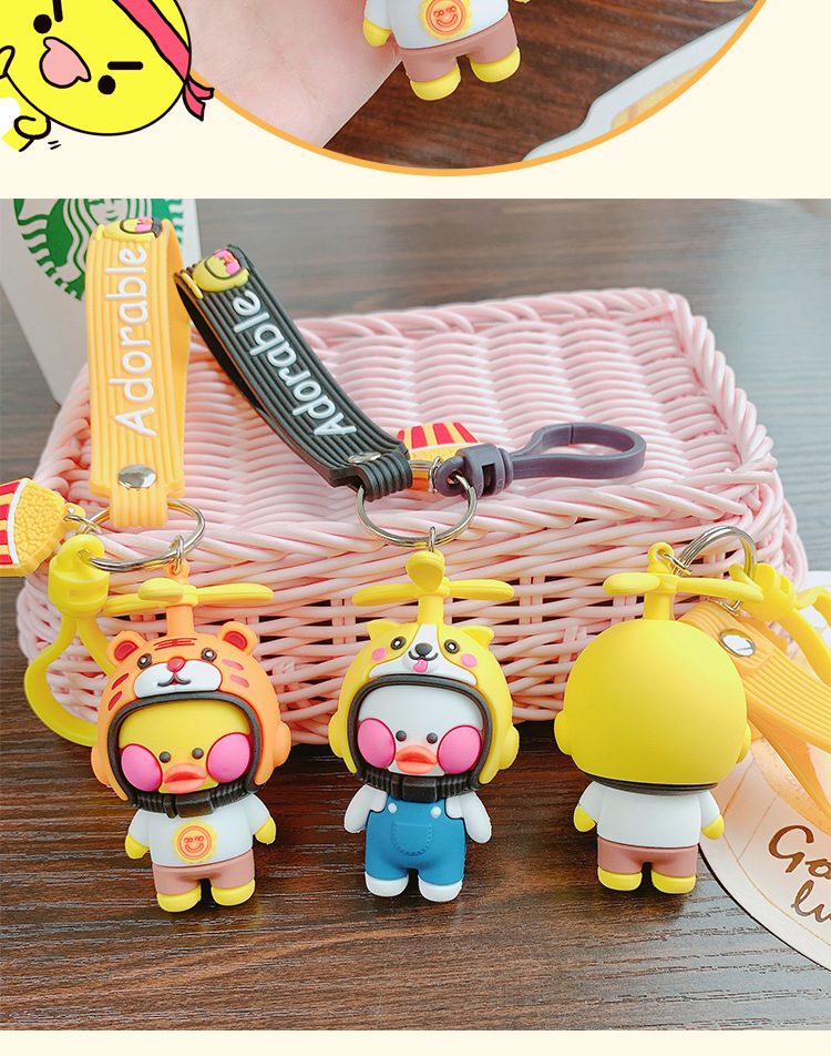 Wholesale of popular helmet duck cartoon keychains, cute car key pendants, creative girls' schoolbag pendants and gifts