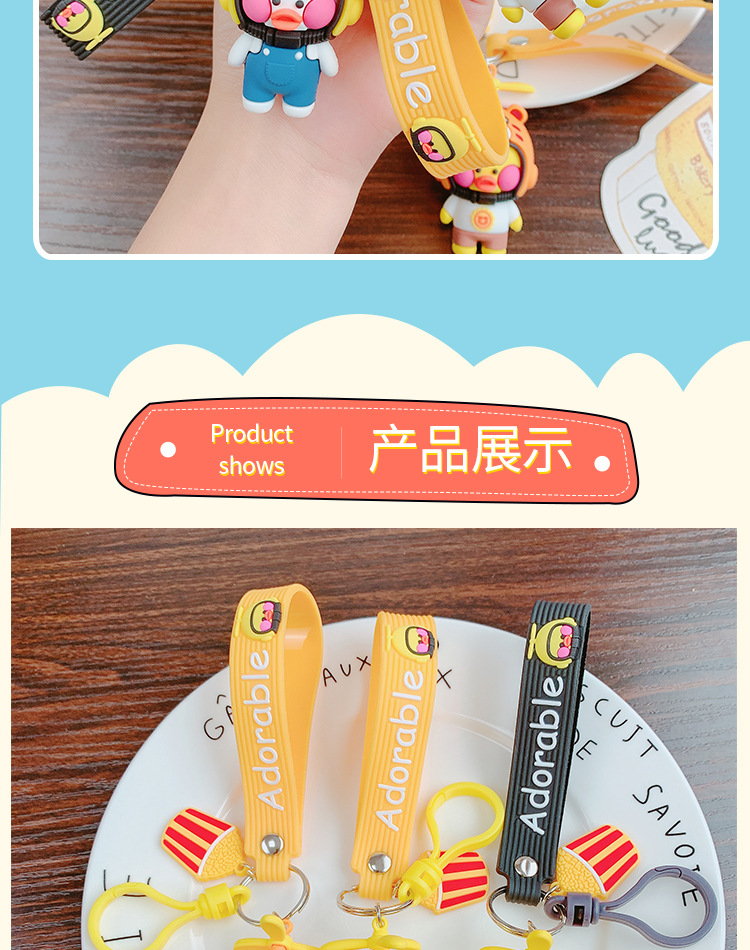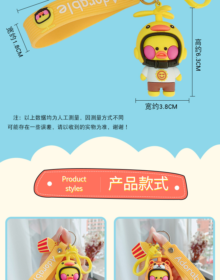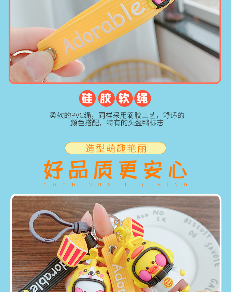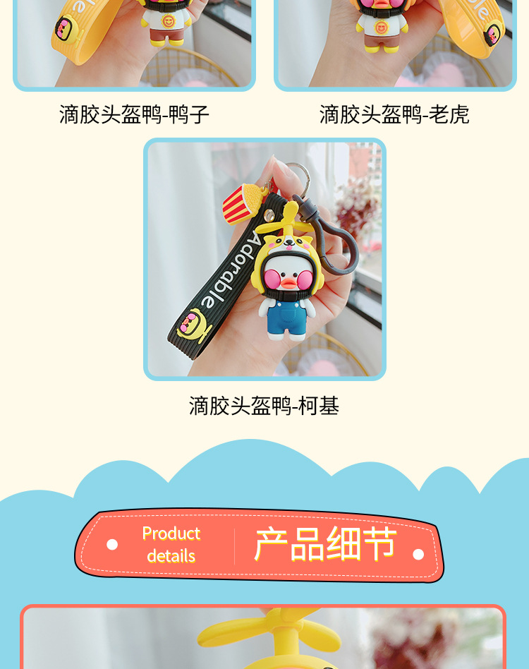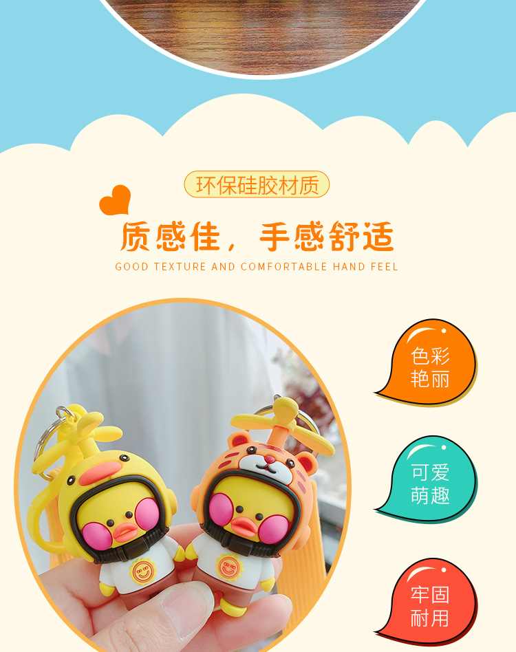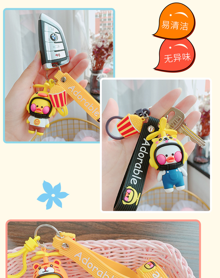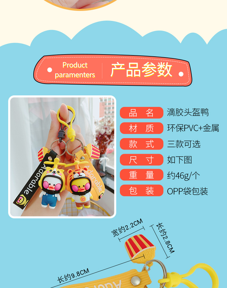 Wholesale of popular helmet duck cartoon keychains, cute car key pendants, creative girls' schoolbag pendants and gifts