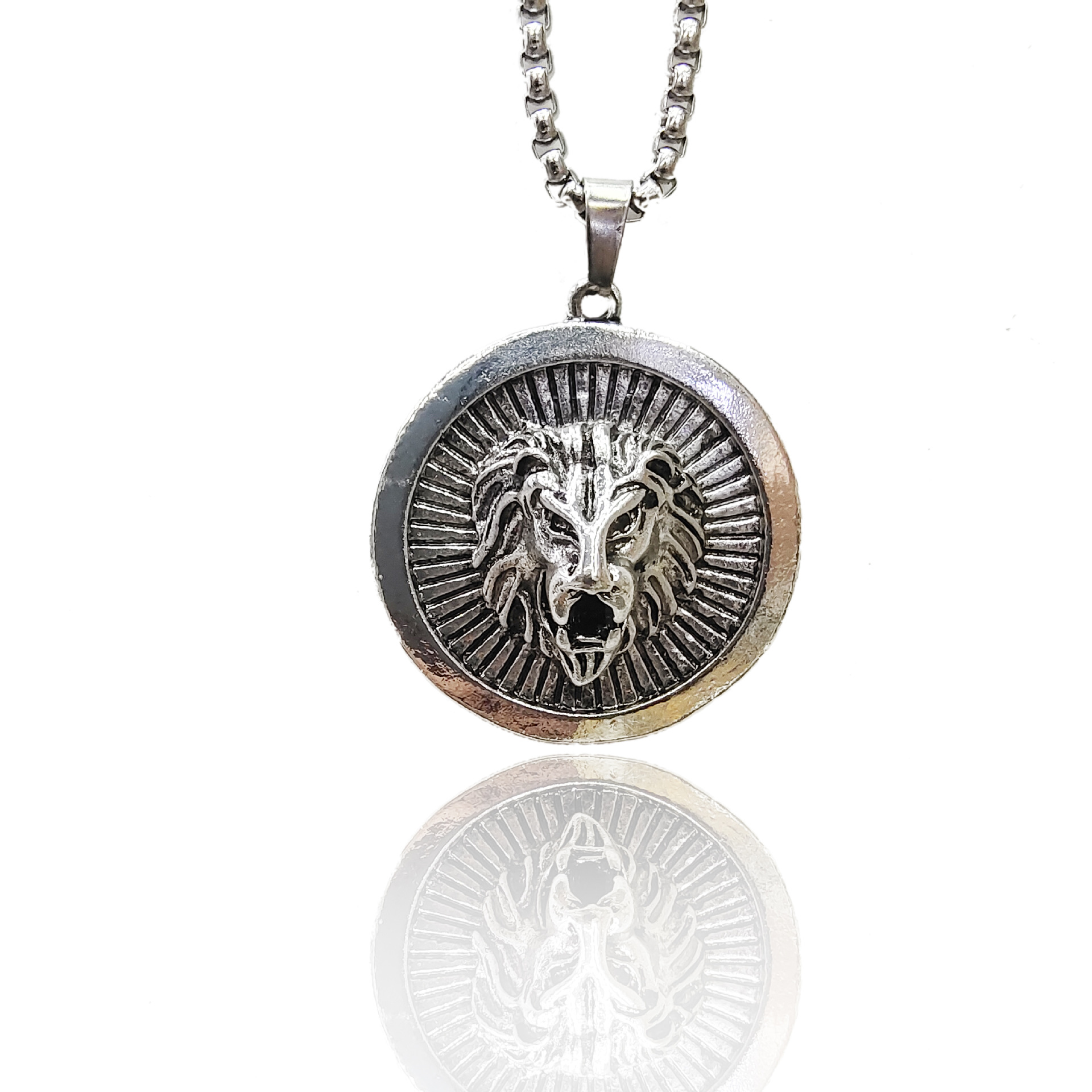 Wholesale of popular men's necklaces, European and American military brand necklaces, sweater chains, alloy lion pendants, stainless steel necklaces