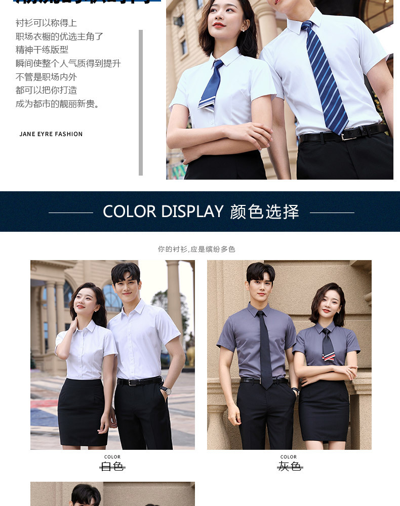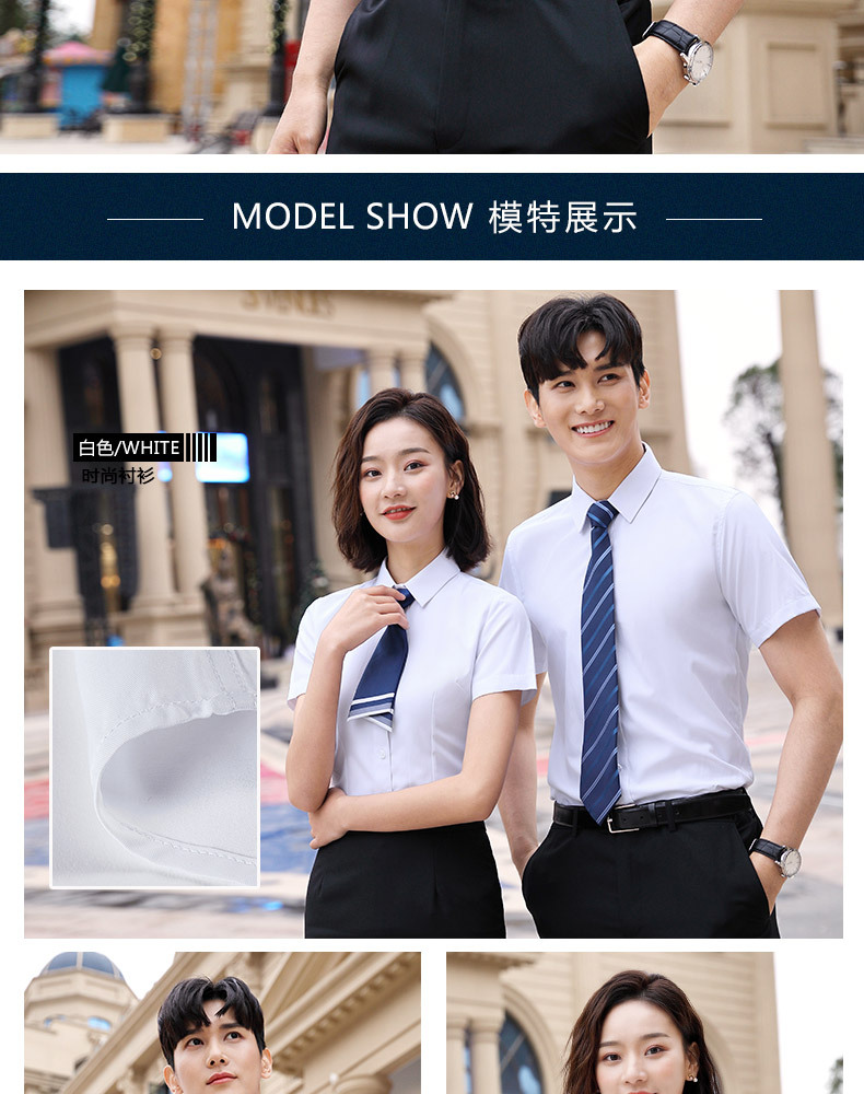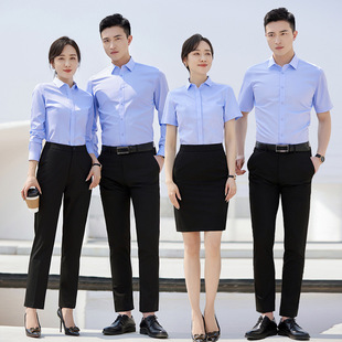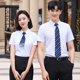 Wholesale of professional short-sleeved shirts, women's summer tops, form-fitting, no-iron white shirts, men's bank work uniforms and formal wear