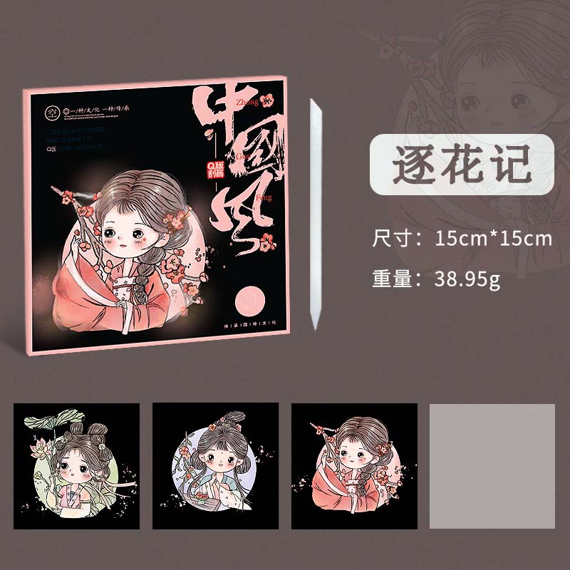 Wholesale of Q-version Chinese trend scratch-off paper, student and children's drawing books, scratch-off wax drawing art graffiti picture books