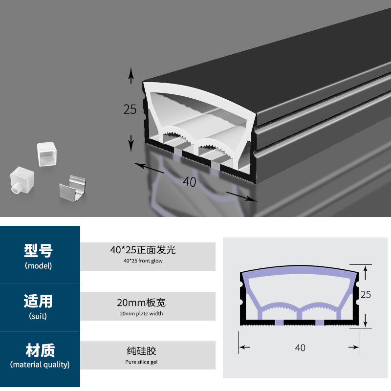 The 60*25 front side emits light