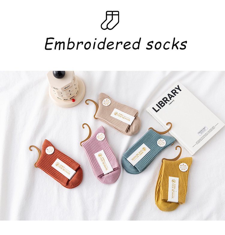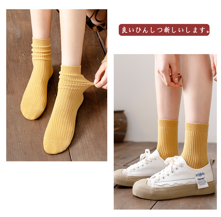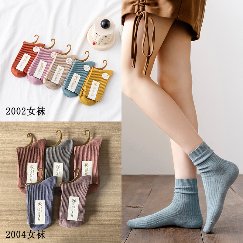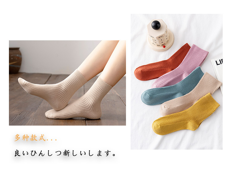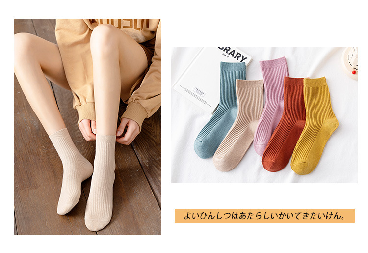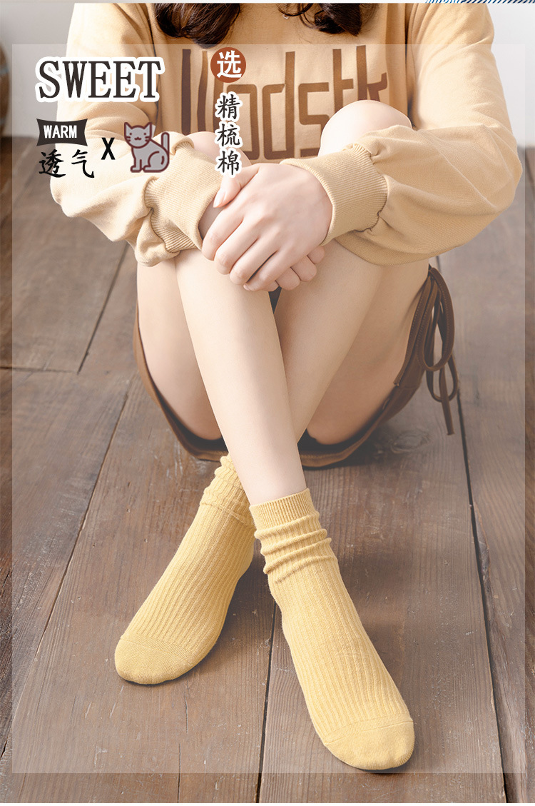 Wholesale of solid color casual combed cotton mid-calf socks and candy-colored double-needle women's socks for autumn and winter 2021