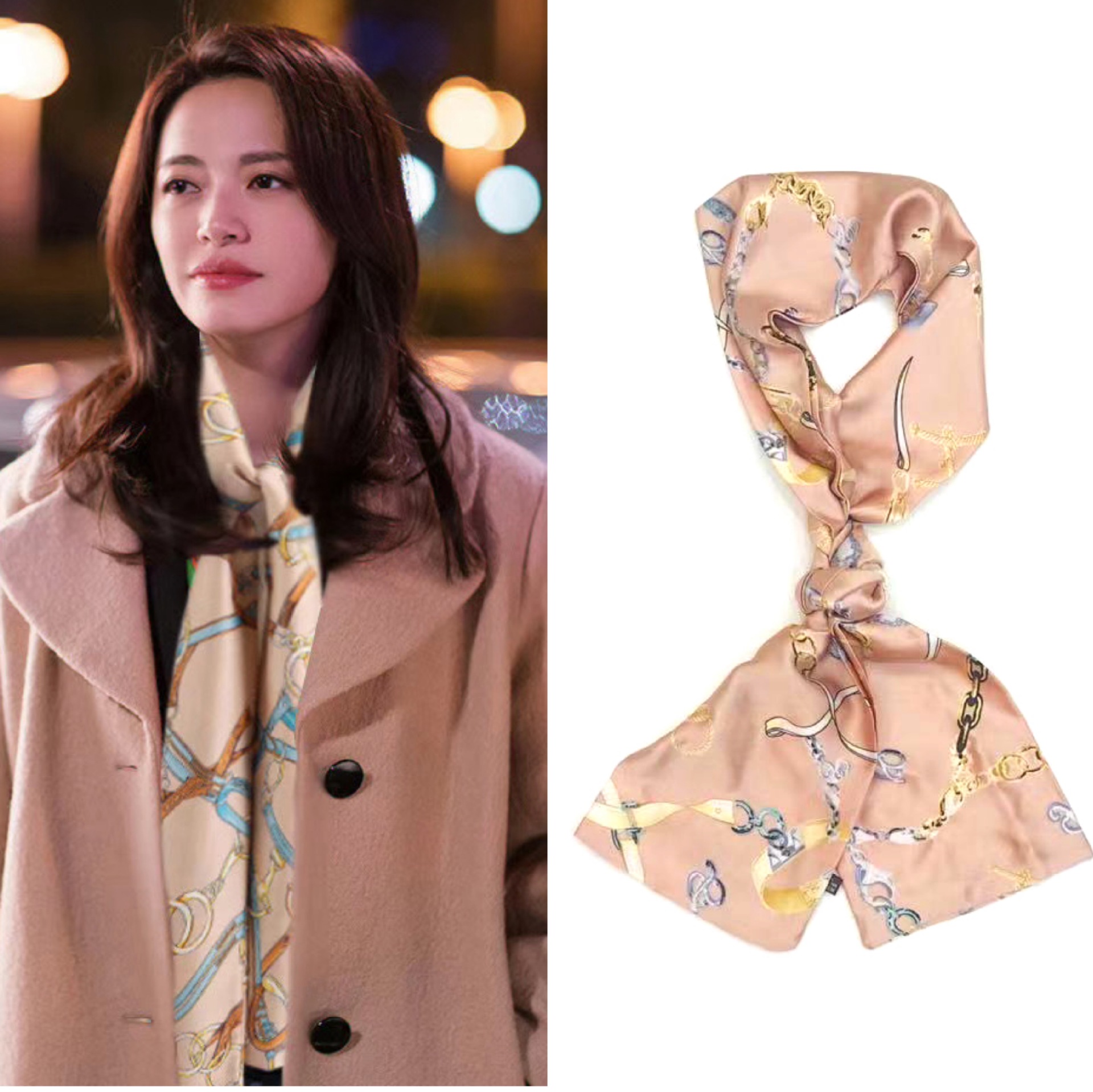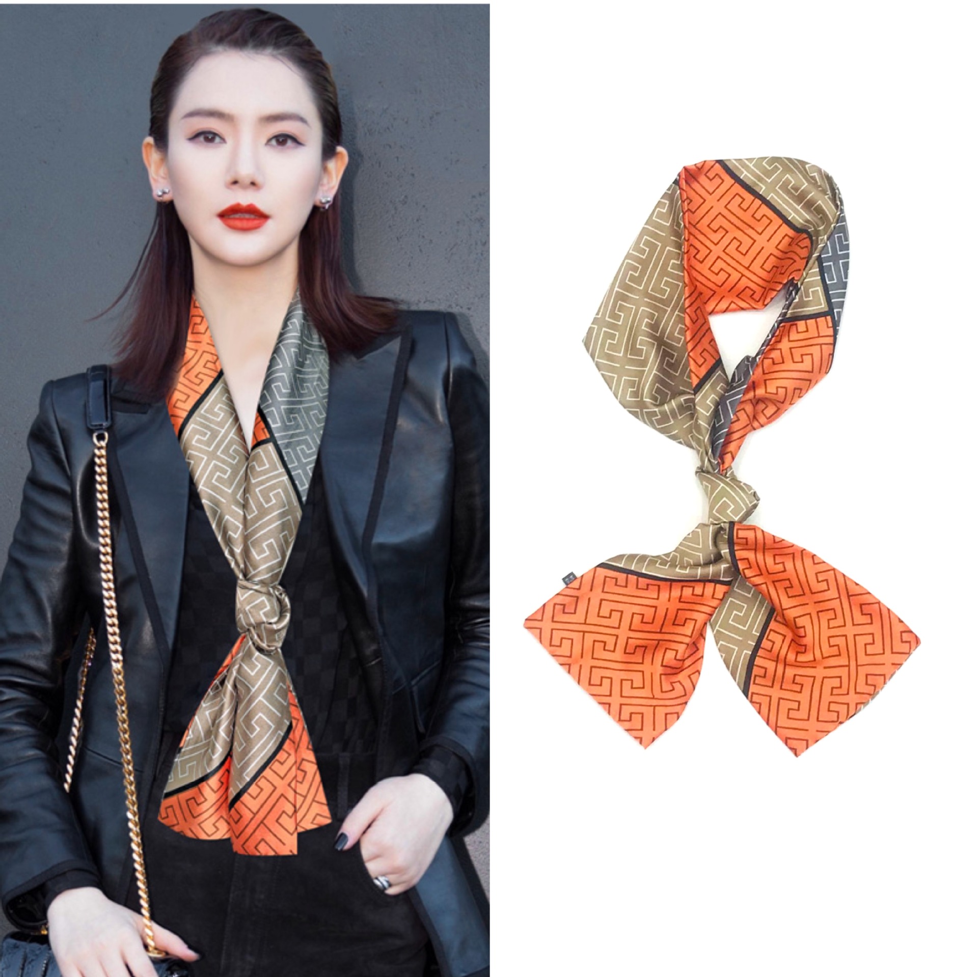 A small silk scarf can immediately give you a unique feeling. A simple combination has a stunning effect