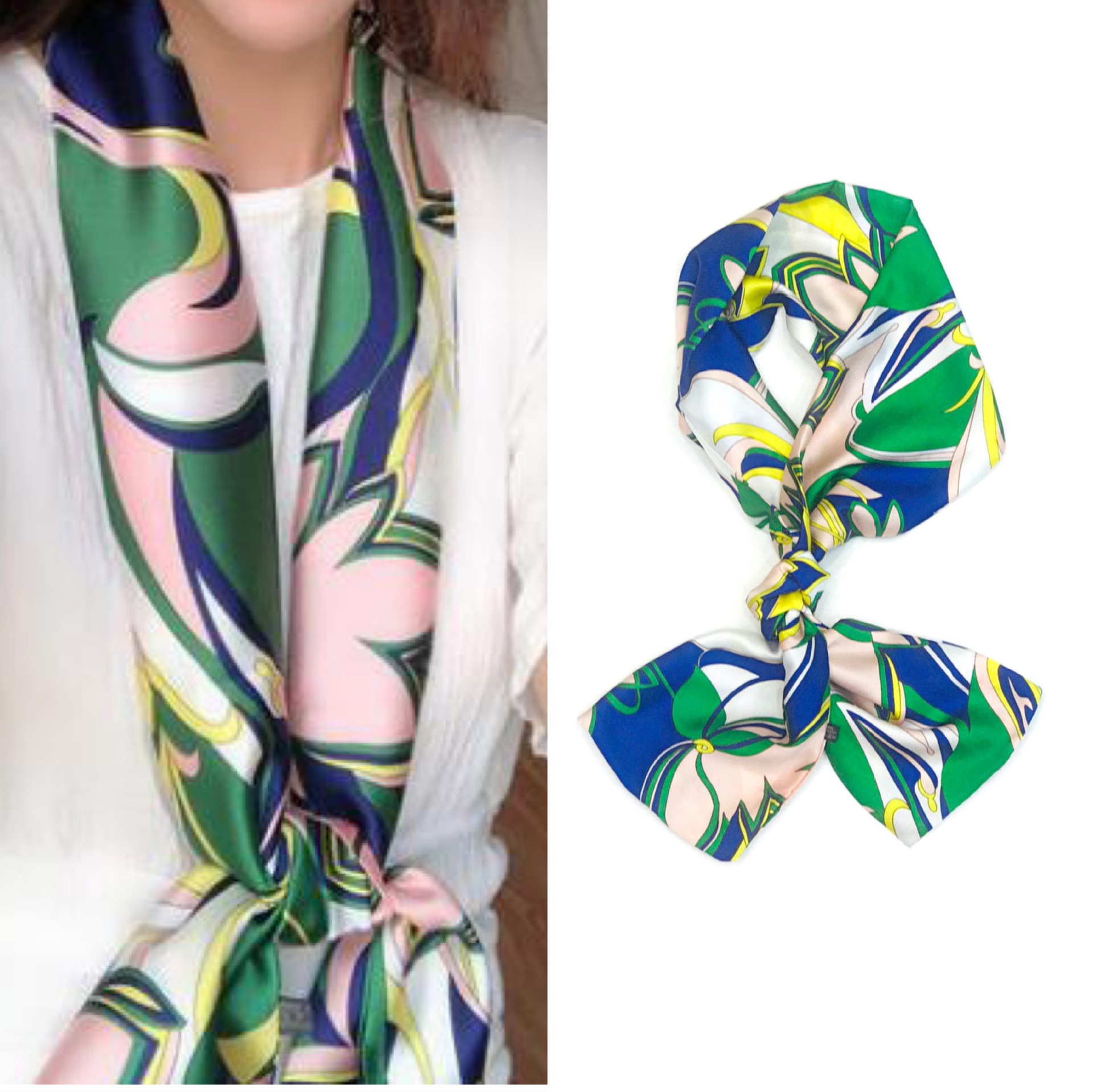 The versatile little silk scarf is a super fashionable and trendy item