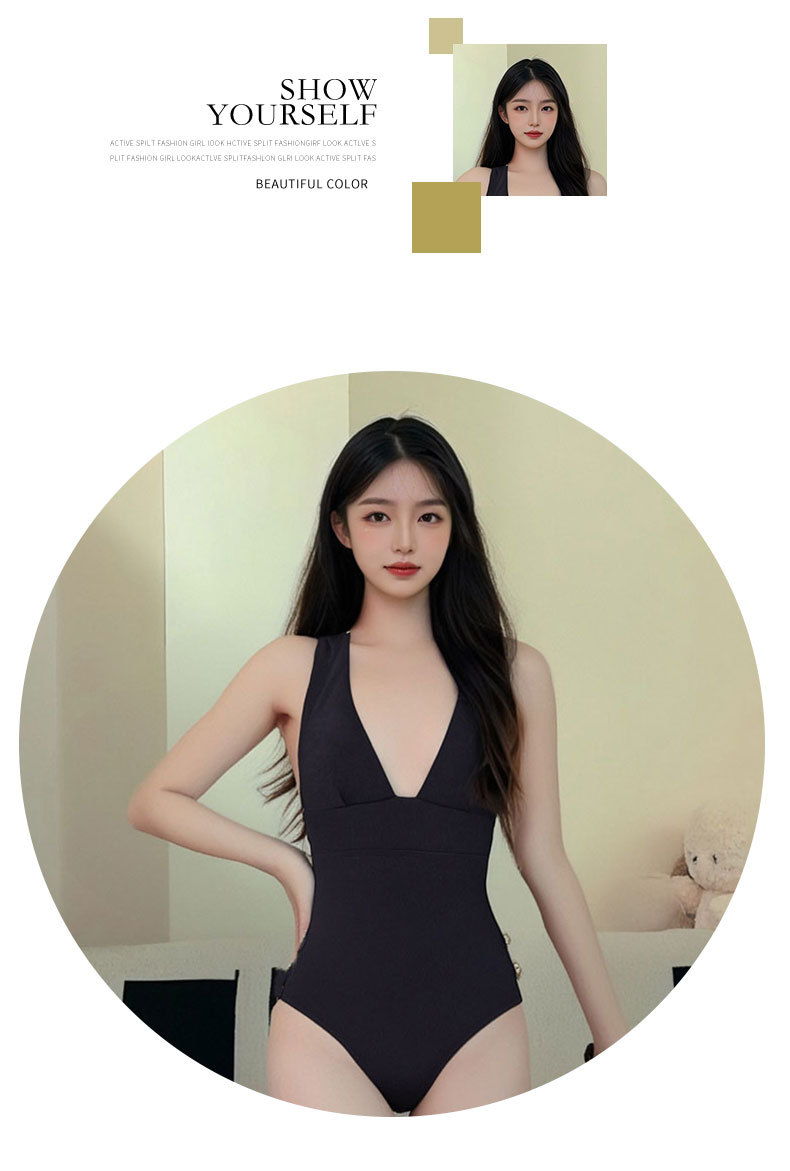 Wholesale of the "Rose Story" - Huang Yimei and Liu Yifei's star-endorsed backless deep v one-piece sexy vacation swimsuit -125052
