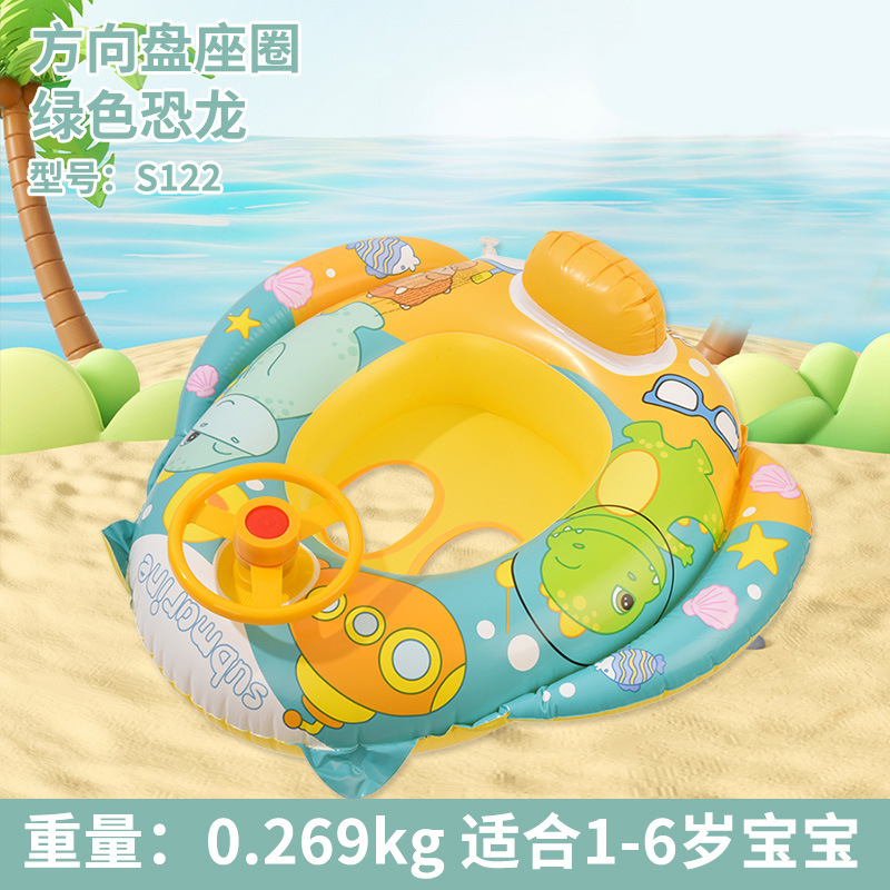 | Children's swimming sunshade boat, cute children's swimming seat ring, thickened baby, inflatable swimming ring for boys and girls, manufacturer |