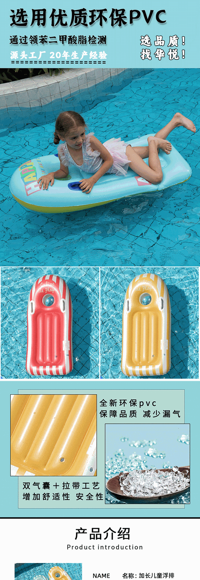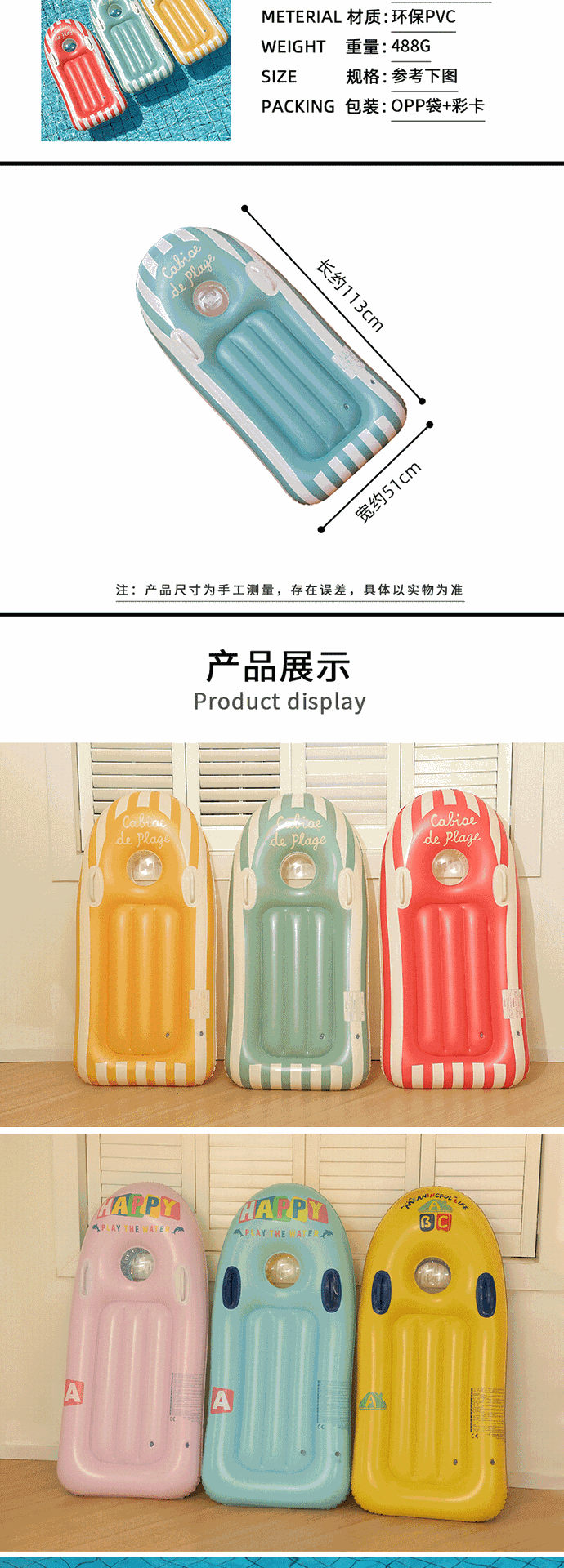 Wholesale of thickened inflatable float boards for children, children's surfboards with handles, swimming water slides, and water inflatable float beds