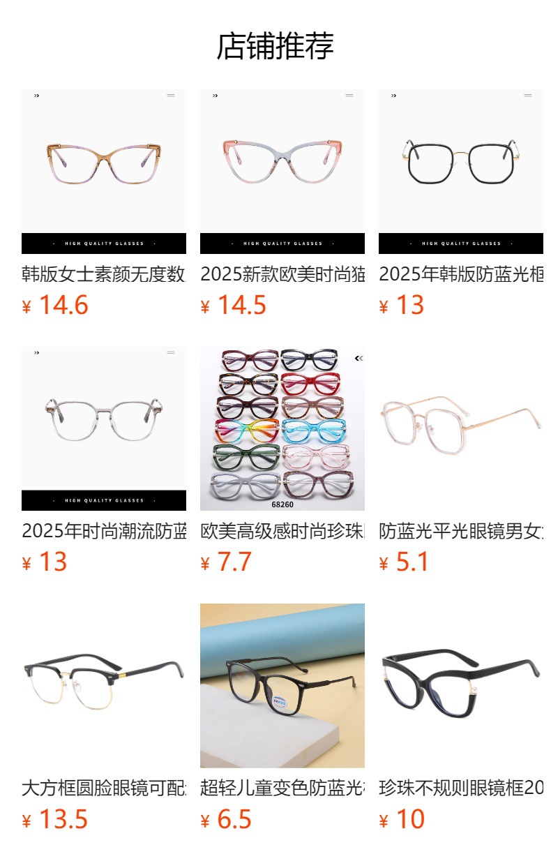 Wholesale of women's full-frame small-face glasses with anti-myopia blue light